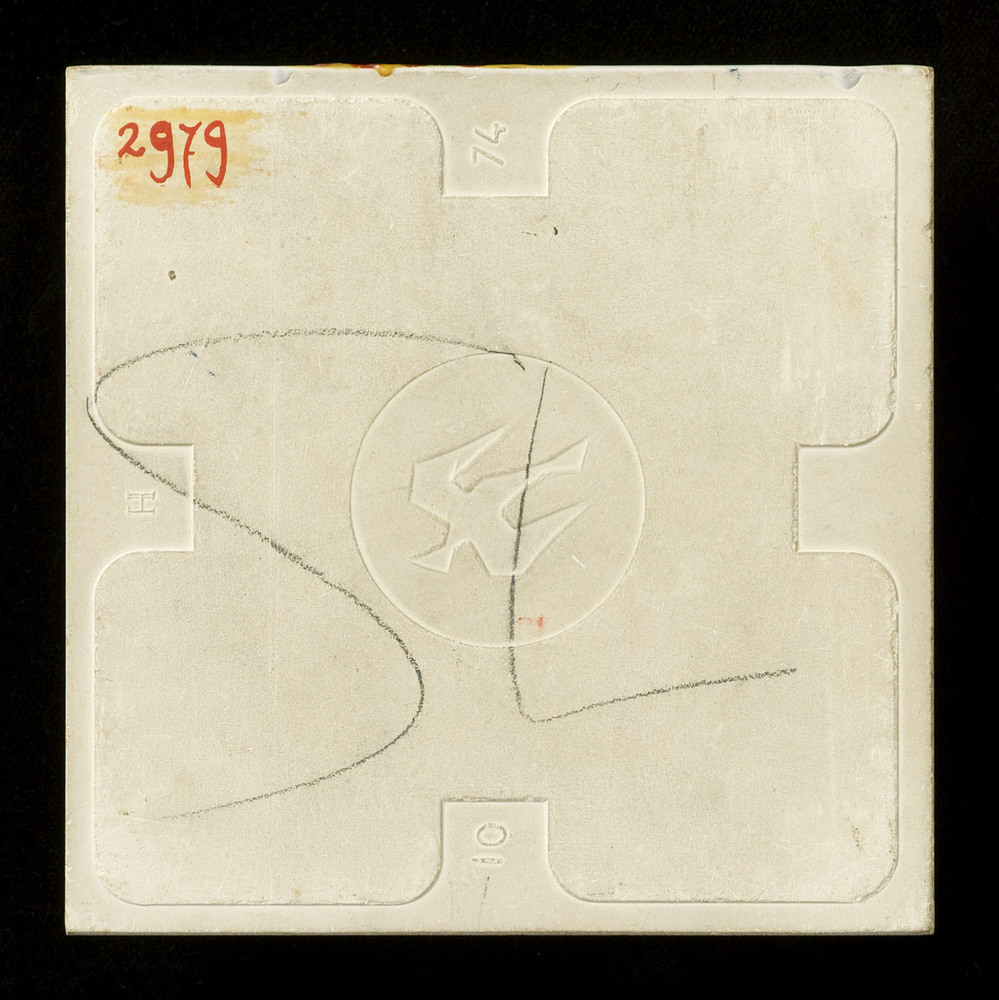 tegel van keramiek met tinglazuur, voorstellende: ru...