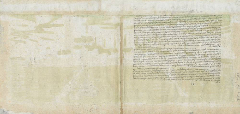 Gravure, ingekleurd, voorstellende gezicht op Herder...