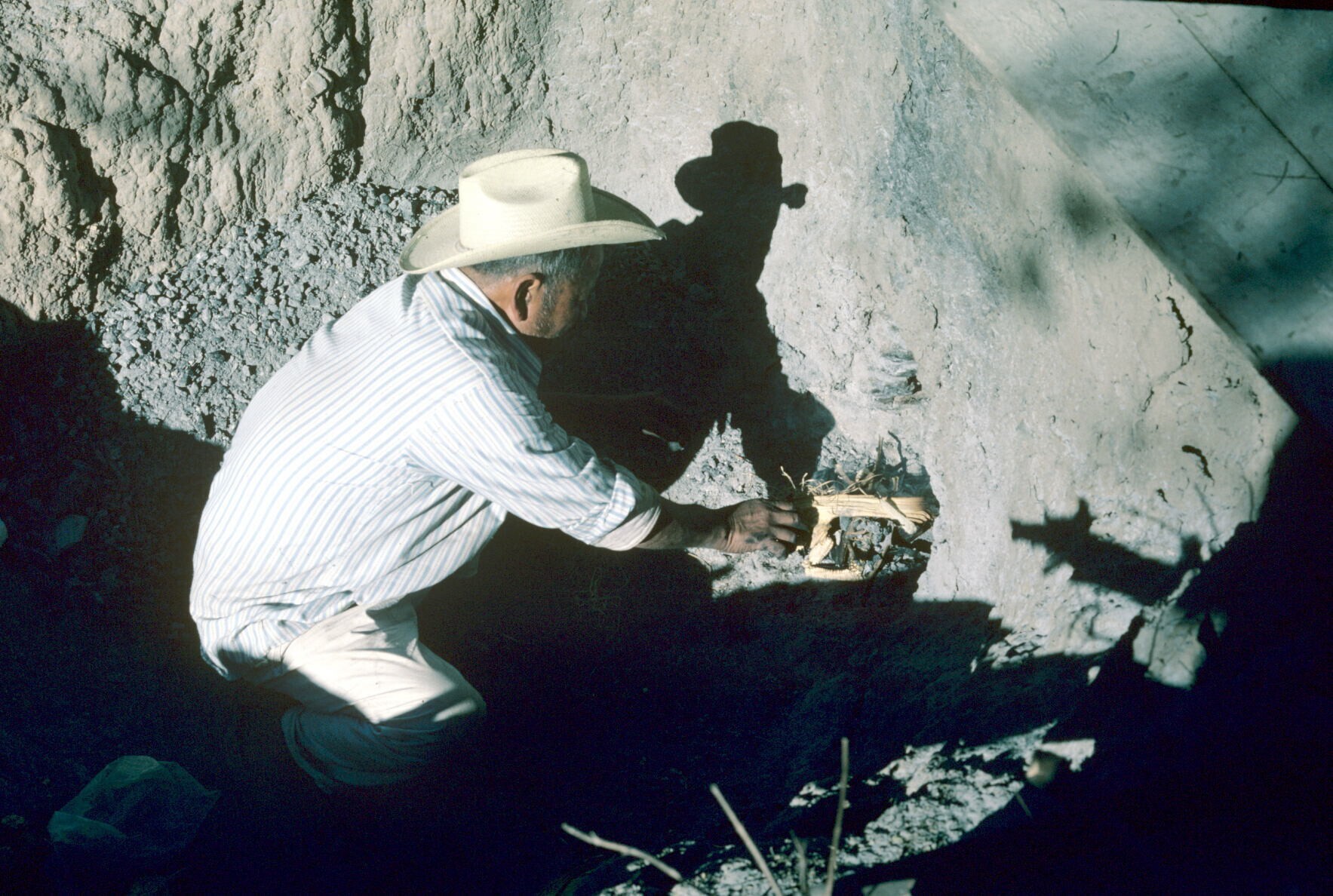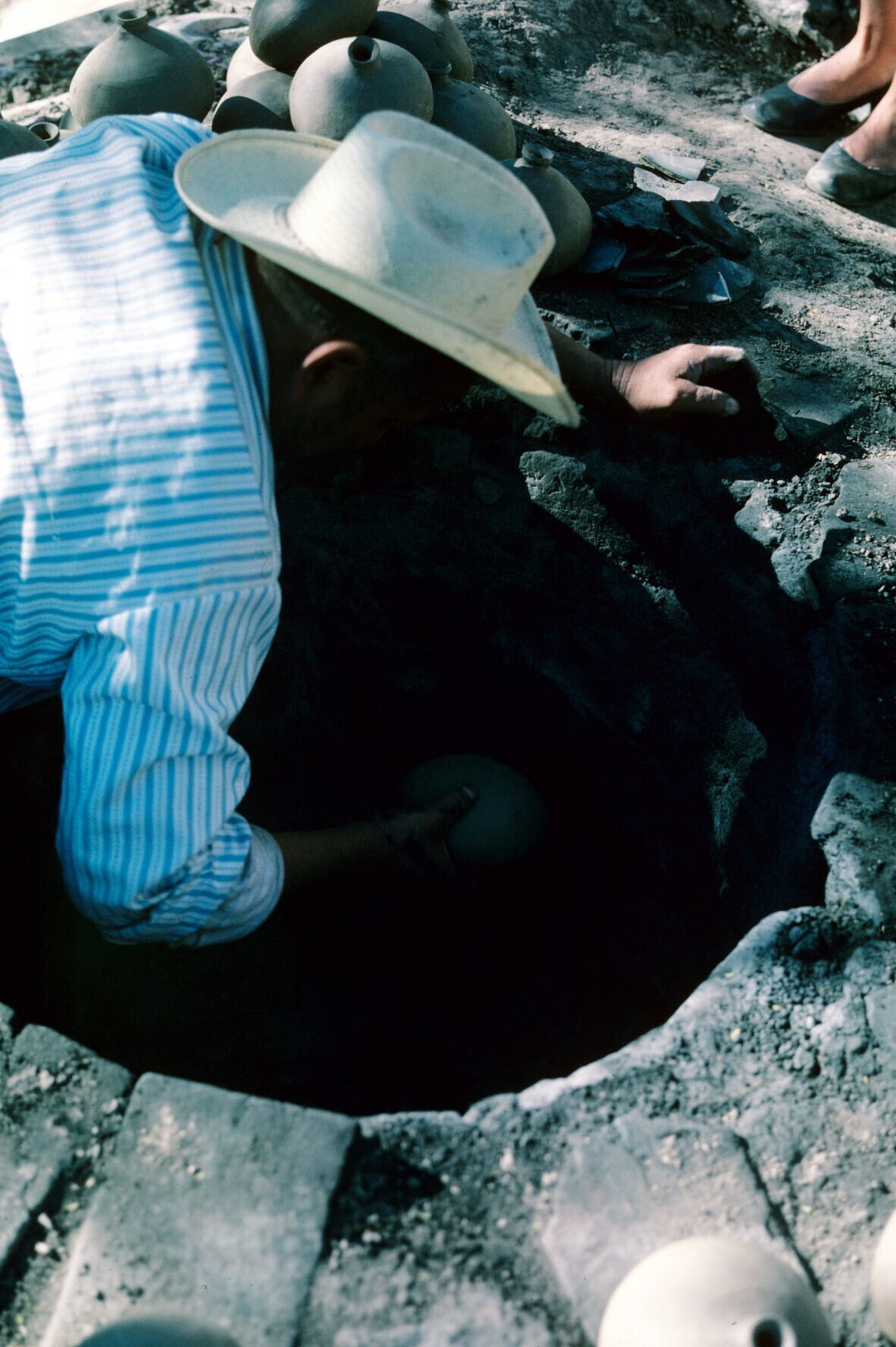 man van pottenbakster Juana Domínguez steekt vuur aa...