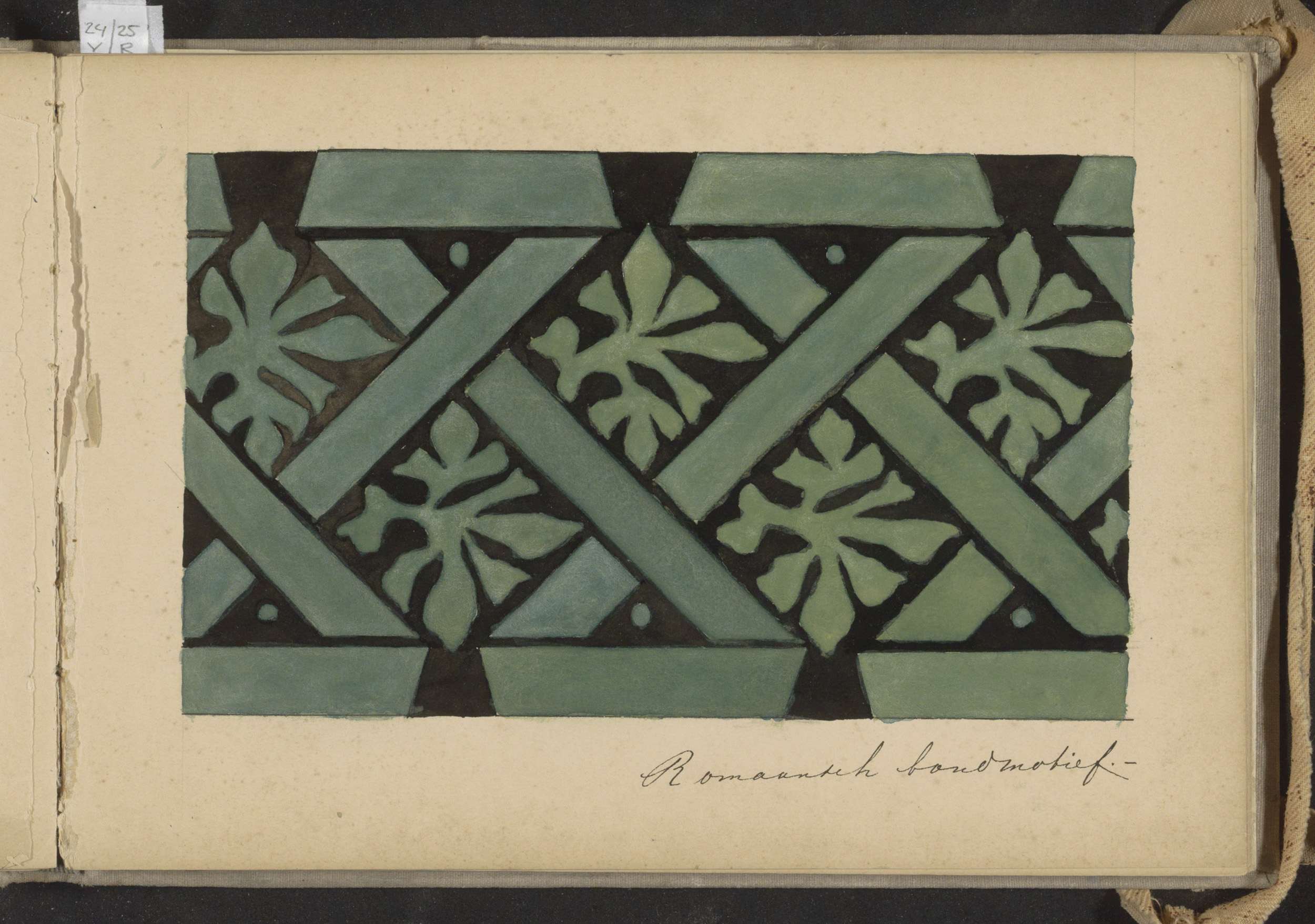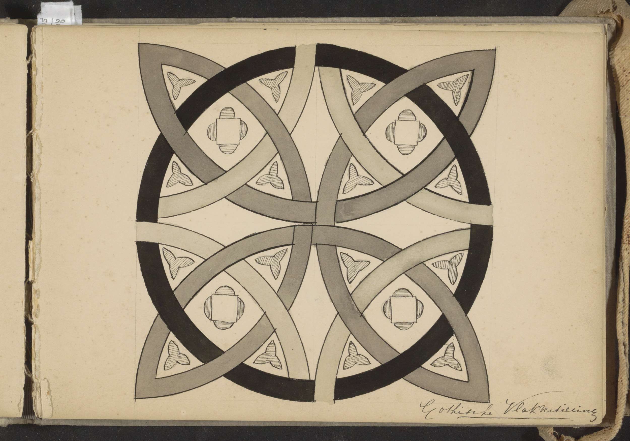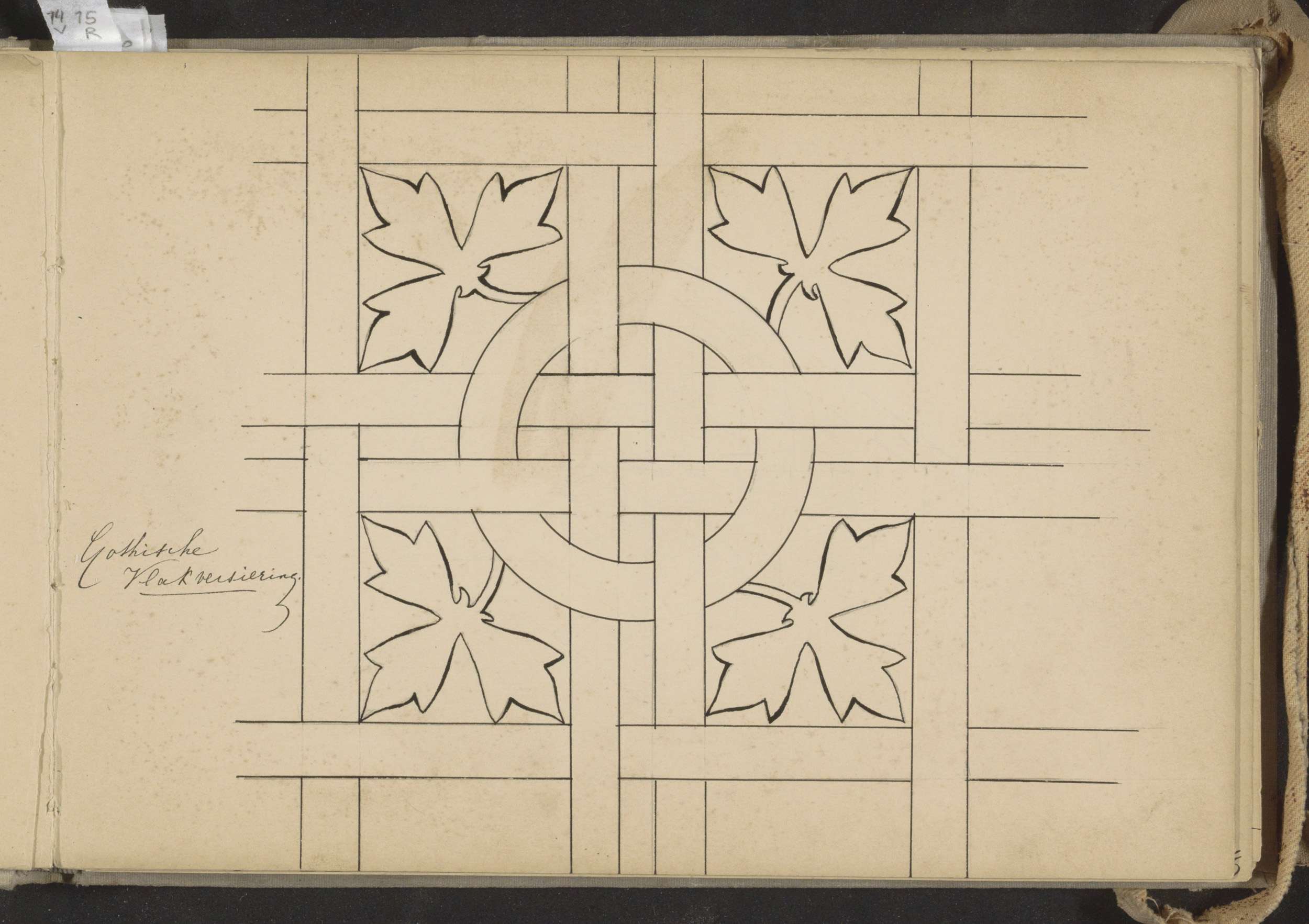 Gotische vlakversiering met vlechtwerk en eikenbladeren