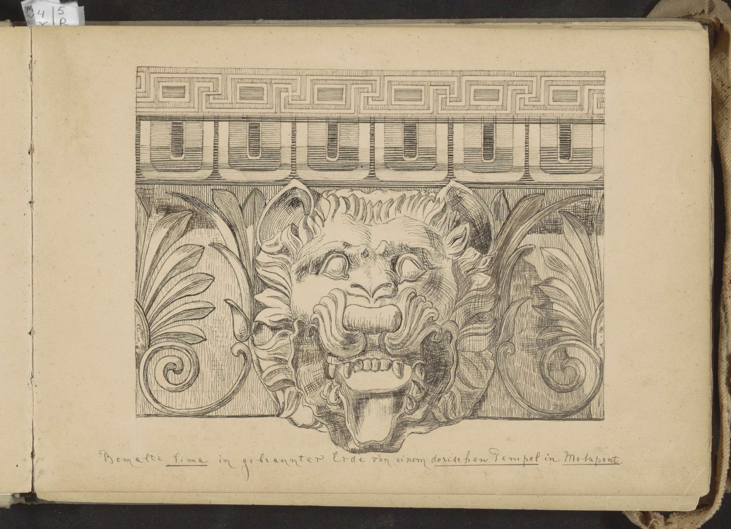 Kop van een leeuw op een Dorische tempel te Metaponto
