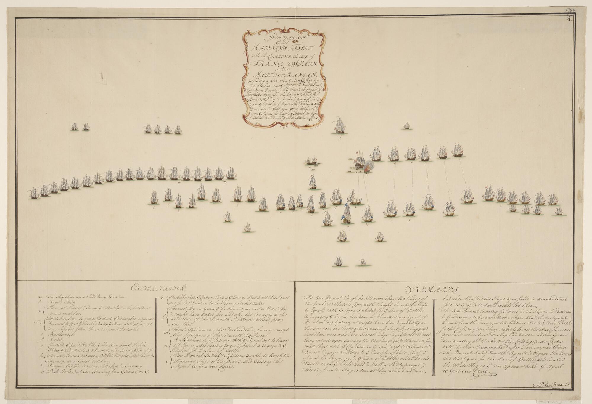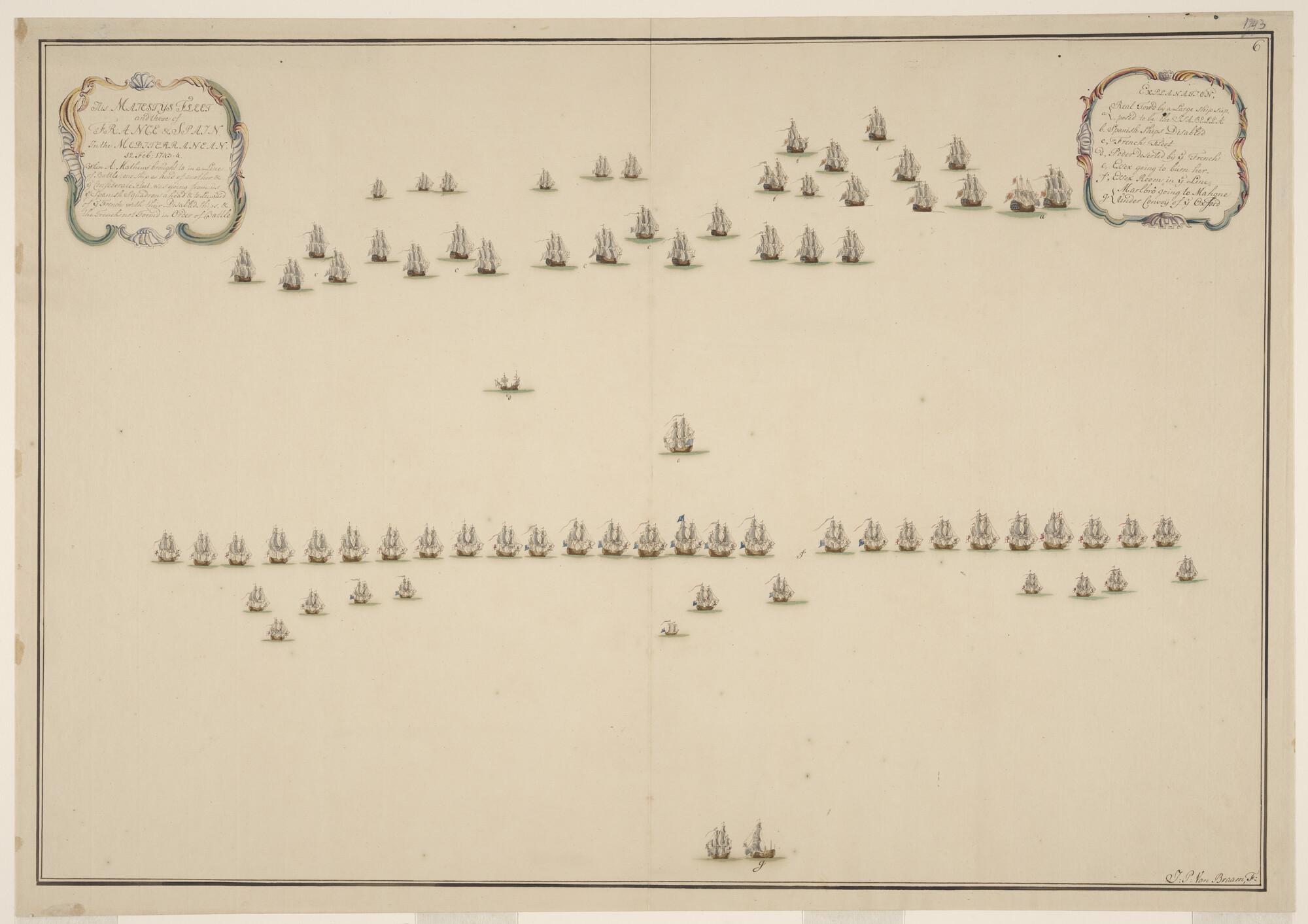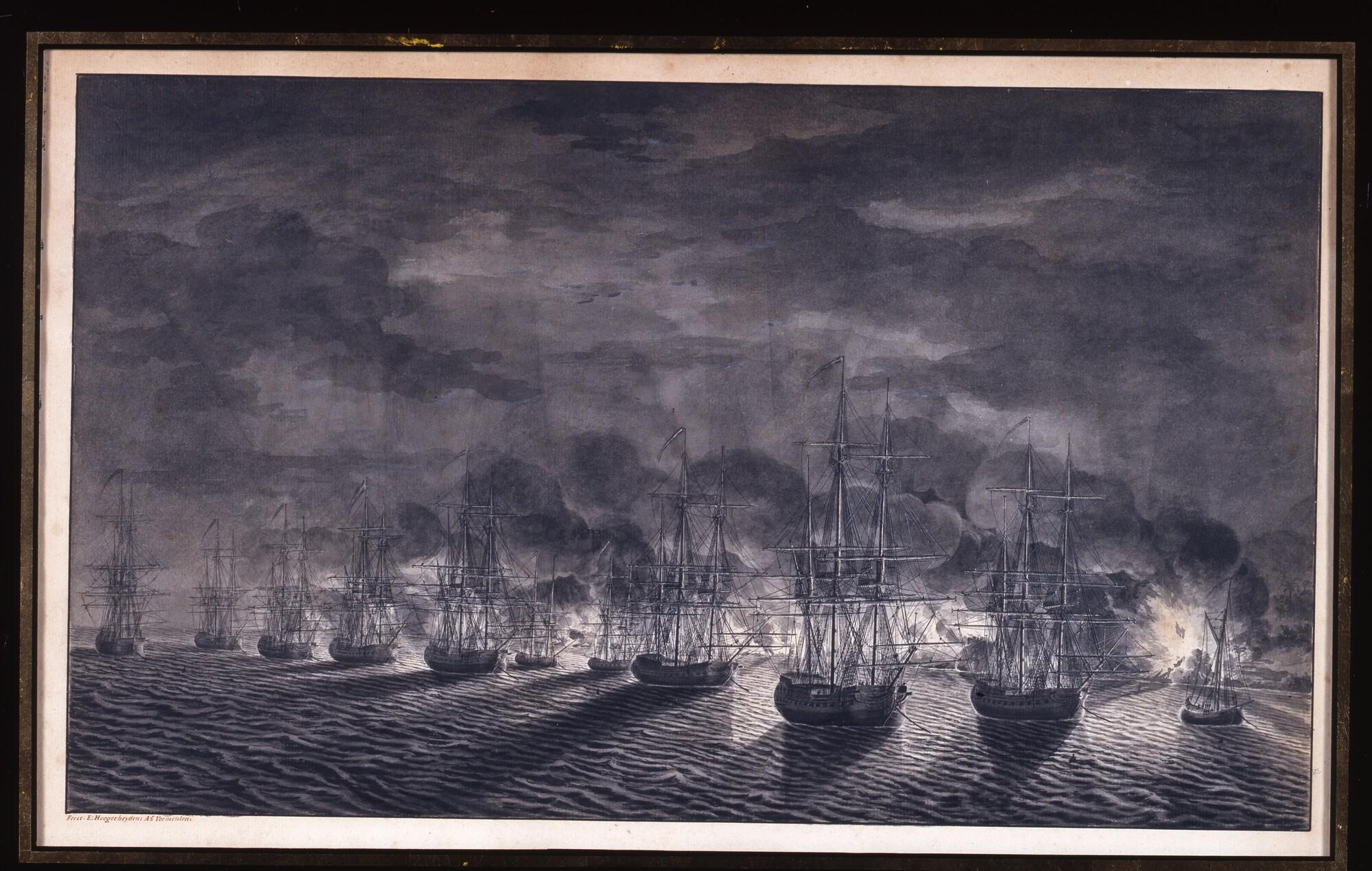 Tekening van de zeeslag tussen de Engelse vloot en d...