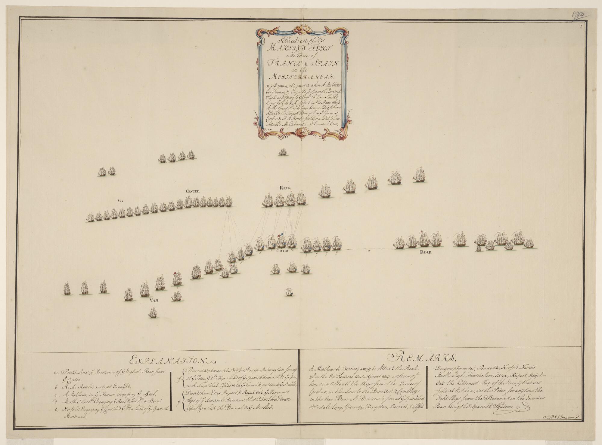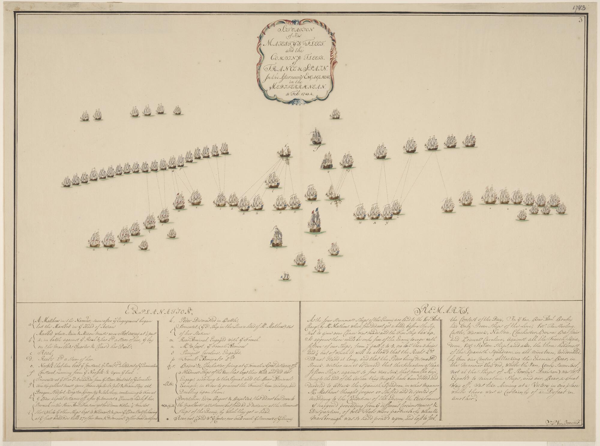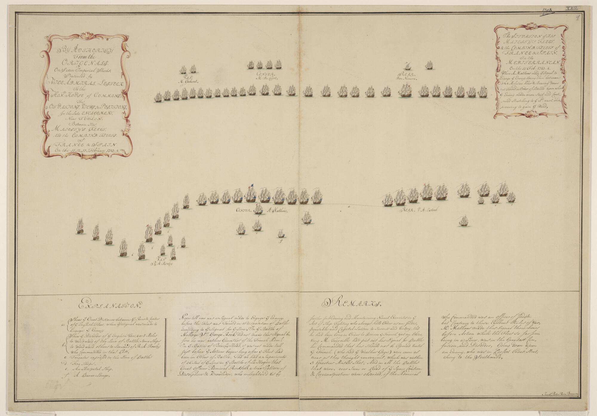 Tekening van de zeeslag tussen de Engelse vloot en d...