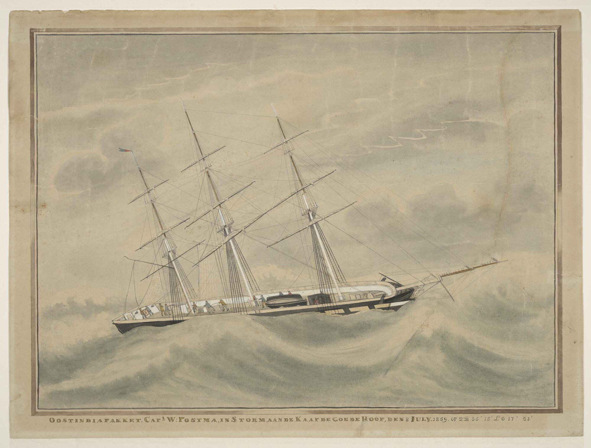 Het fregat 'Oost India Pakket' in stormweer ter hoog...