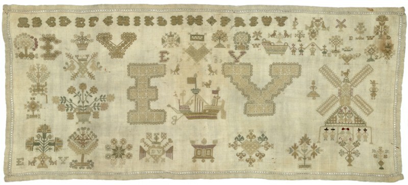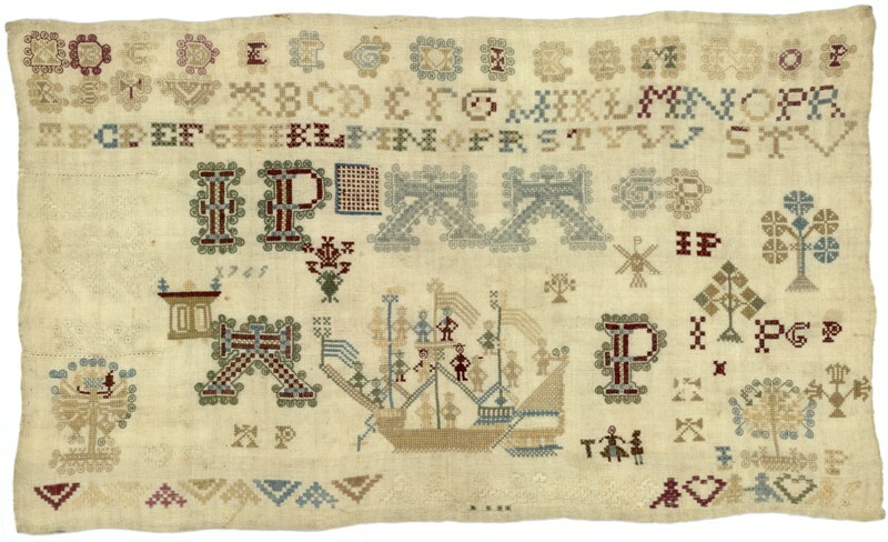 Merkletterlap met grondje en schip, gemerkt ‘elisabe...