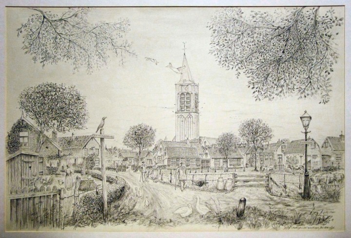 Tekening Kerkbuurt, omstreeks 1900