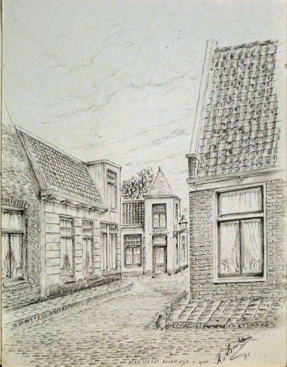 Tekening Kerkstraat, omstreeks 1930