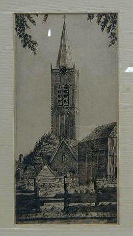 Schilderij voorstellende Grote Kerk in Beverwijk, na...