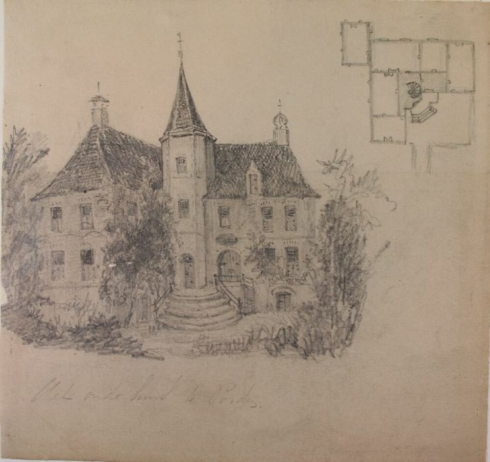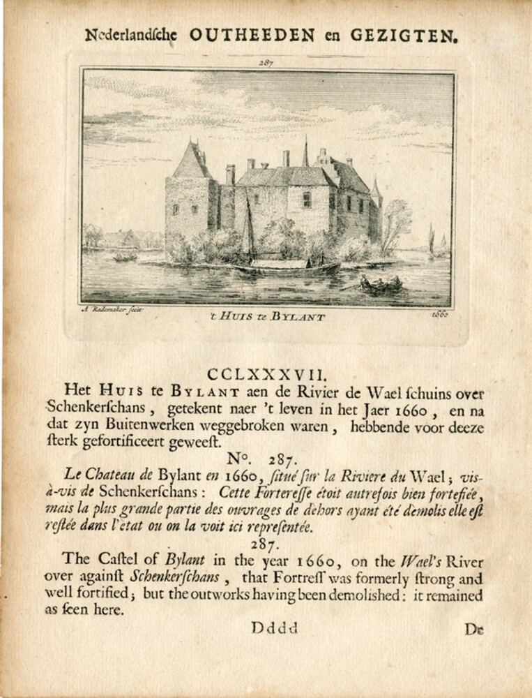 Gravure met afbeelding van Huis Bylandt op papier na...