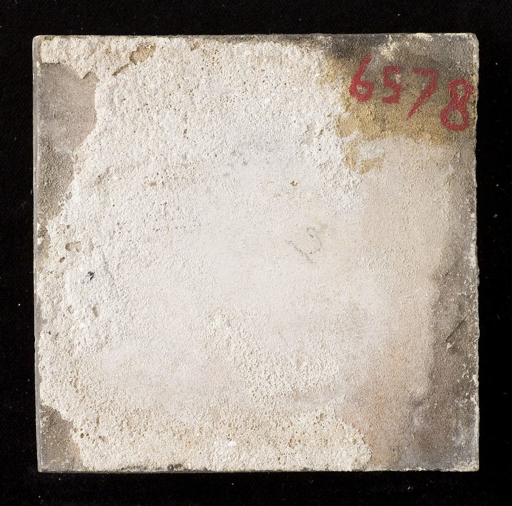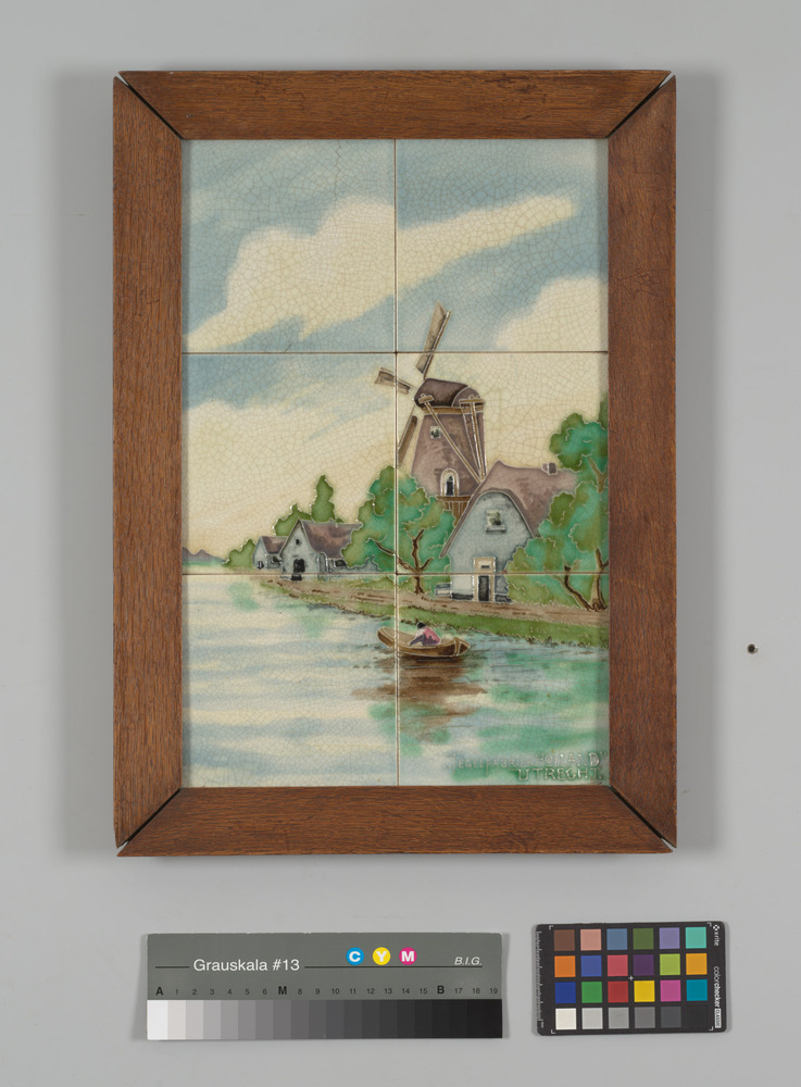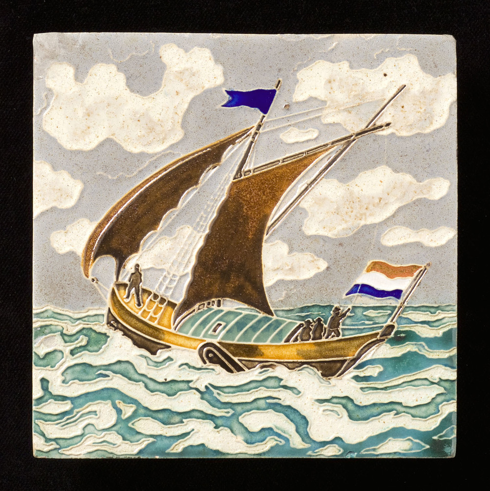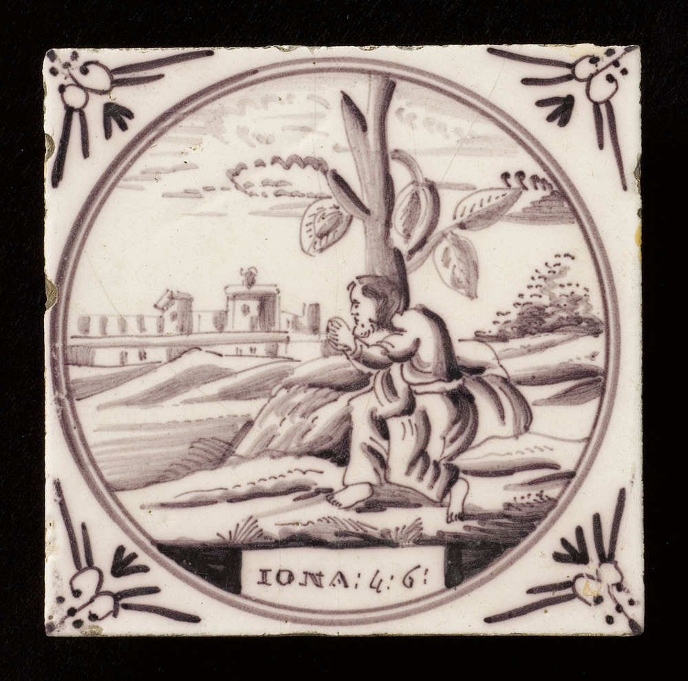 tegel van keramiek met tinglazuur, voorstellende: la...
