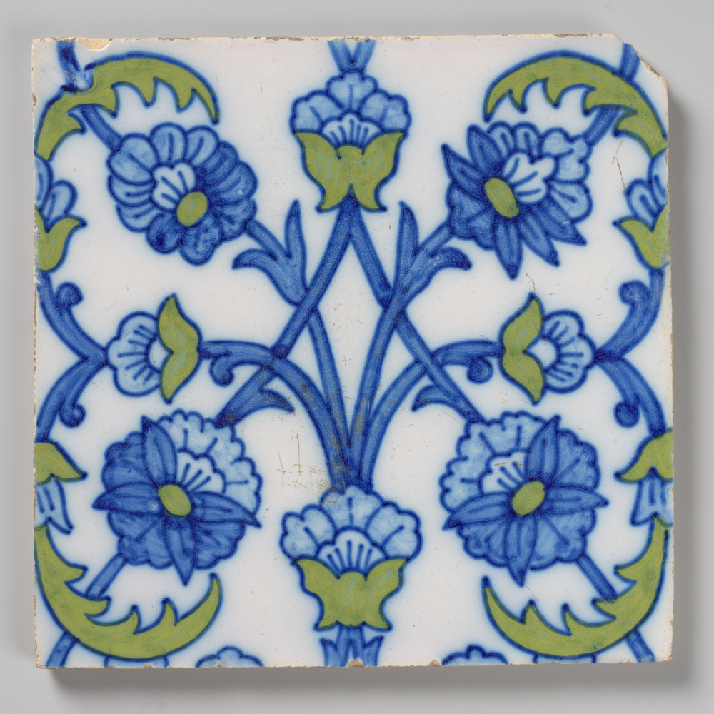 Tegel van keramiek met tinglazuur, voorstellende:orn...