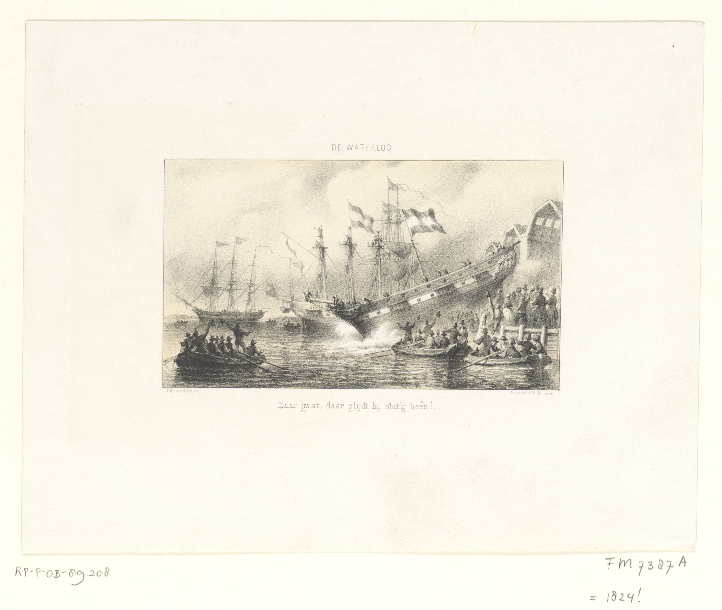 Tewaterlating van het linieschip Waterloo, 1824