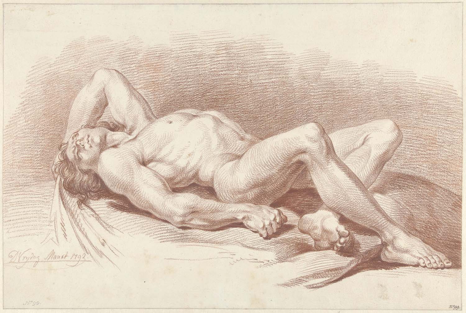 Liggend mannelijk naakt, met arm achter het hoofd