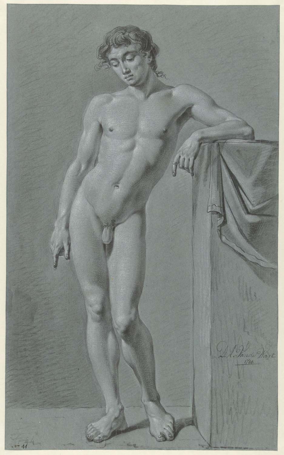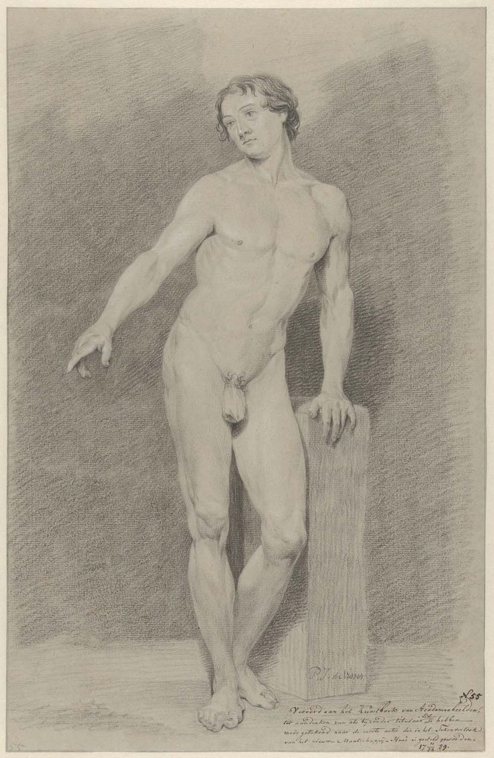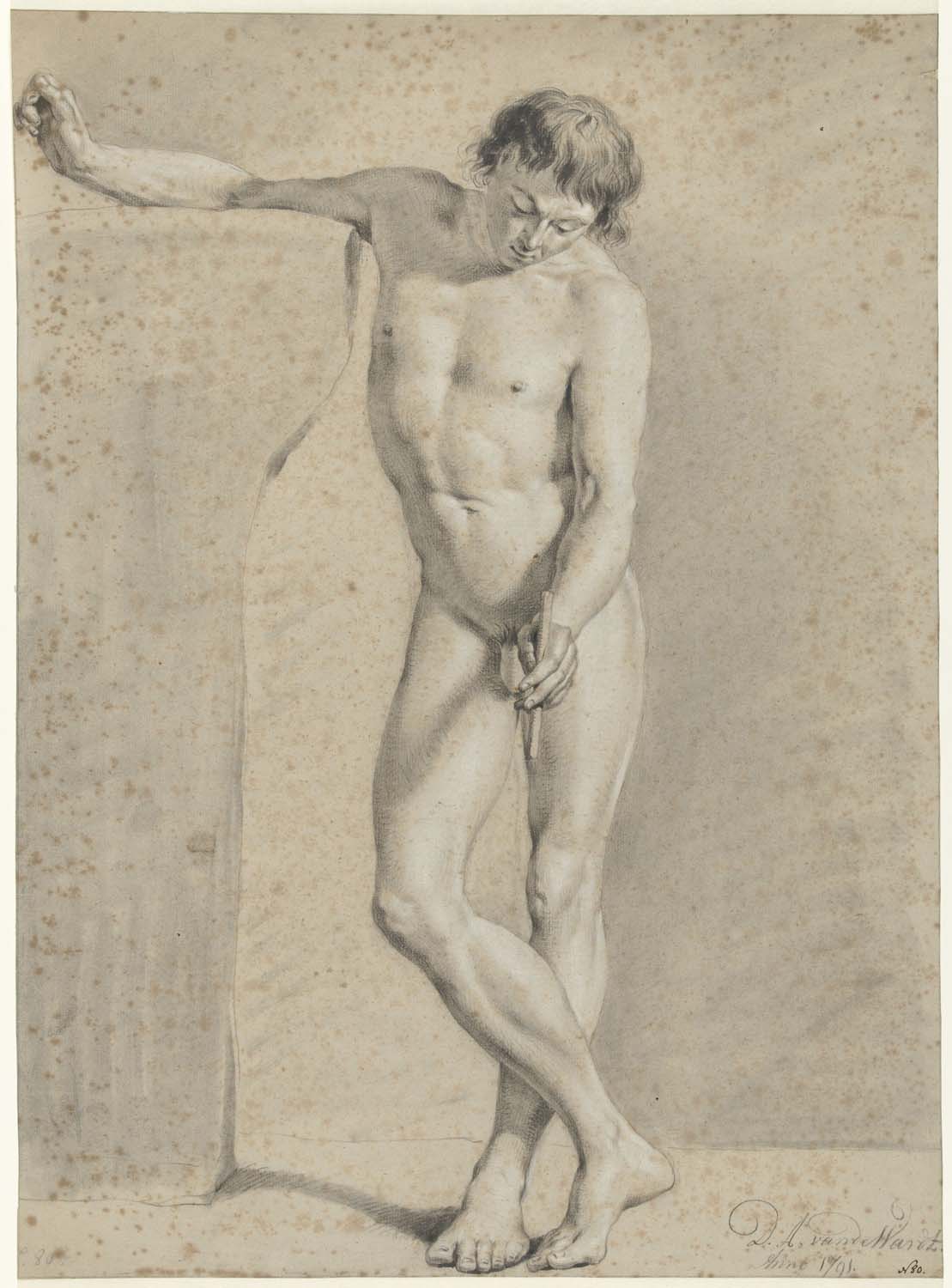 Staand mannelijk naakt, met uitgestrekte arm, naar l...