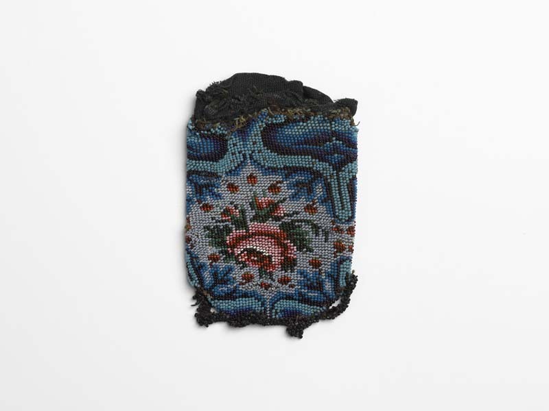 Een met kralen gebreide beurs, zonder beugel, turkoo...