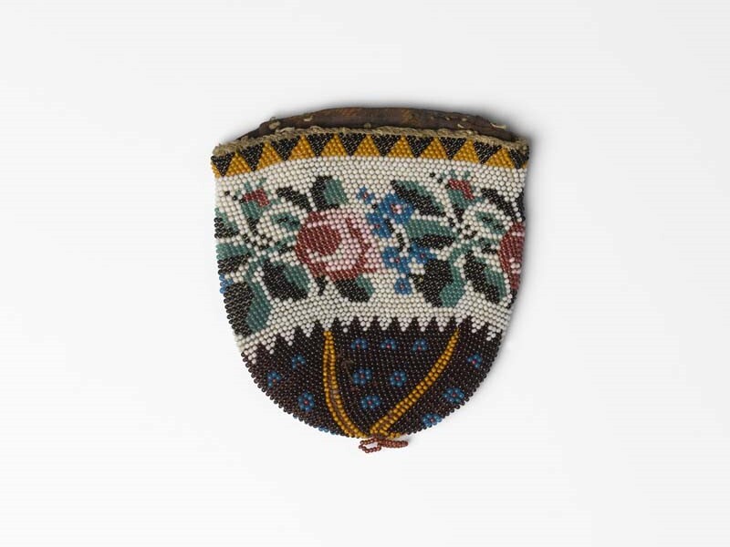 Een rond beursje zonder beugel, met kralen gebreid e...