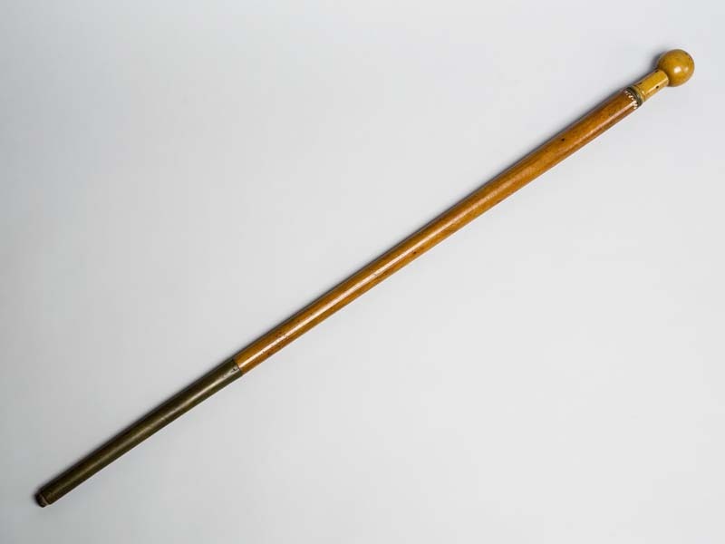 Wandelstok met afschroefbare bolvormige knop, waarin...