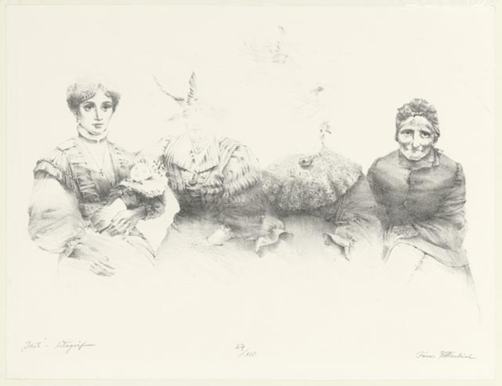 Zonder titel (vrouw met uitstekend kapsel, ondersteu...