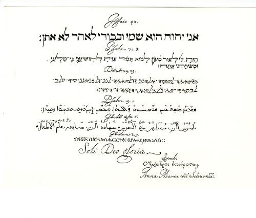 Foto van door Anna Maria van Schurman gemaakte kalli...