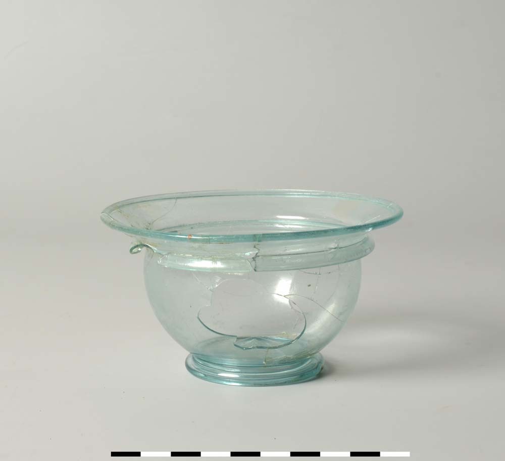 Kom van helder lichtgroen glas uit de Romeinse tijd.