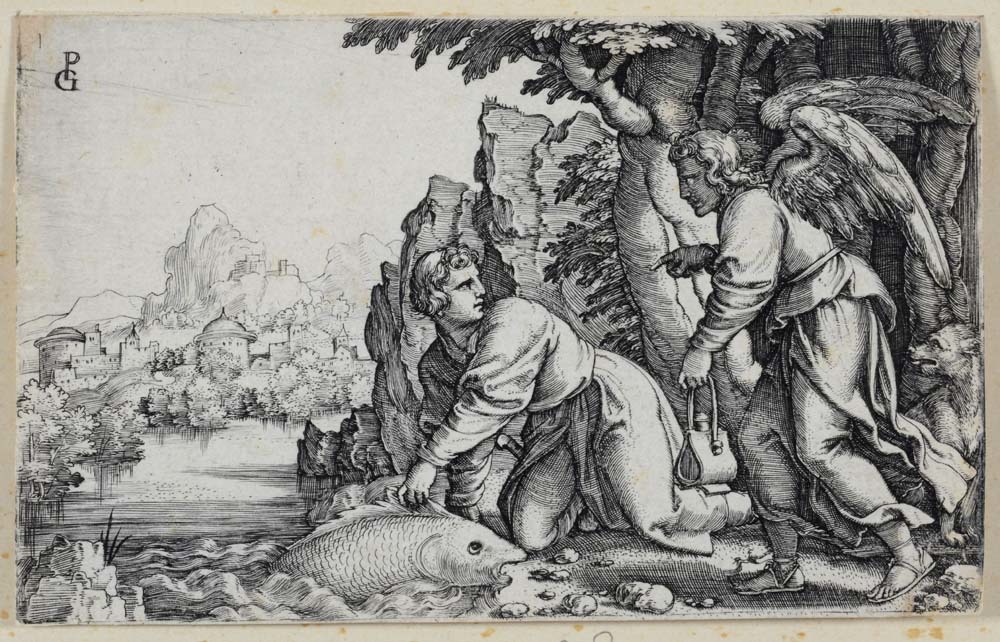 Tobias vangt op aanraden van de engel een grote vis