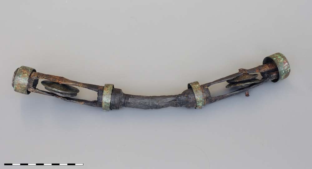 Wangstuk van het paardenbit, van brons uit de Romein...