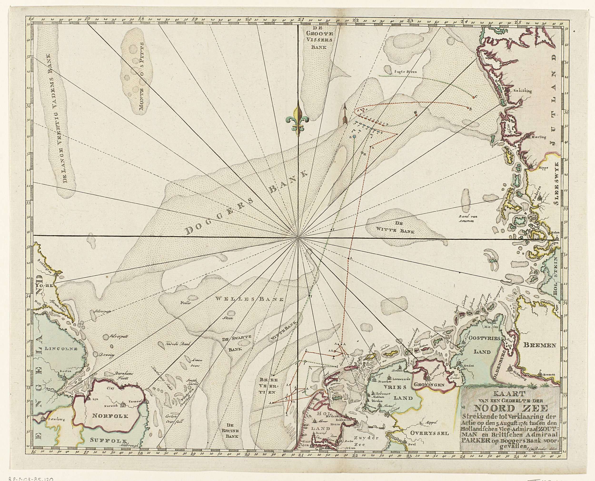 Kaart van de Noordzee met de zeeslag bij Doggersbank...