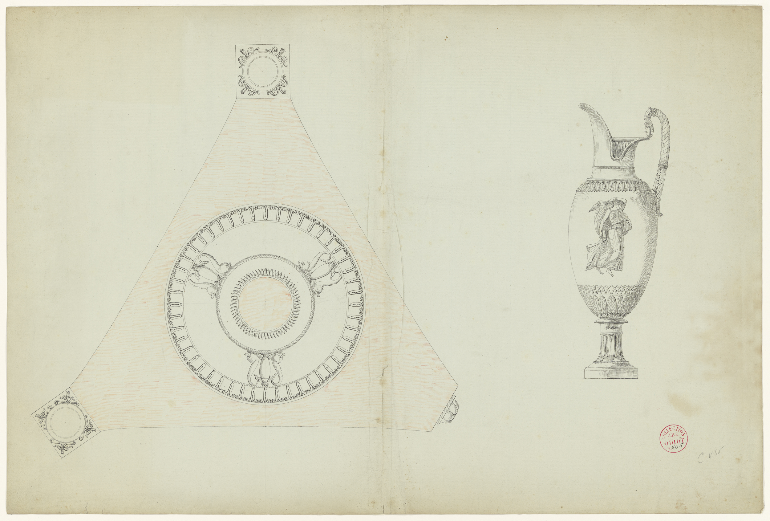 Ontwerp voor een kan en een schaal, de laatste gepla...
