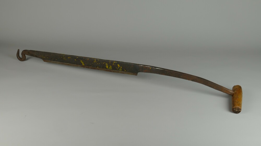 tang voor vuurstoof met twee lange geelkoperen benen...