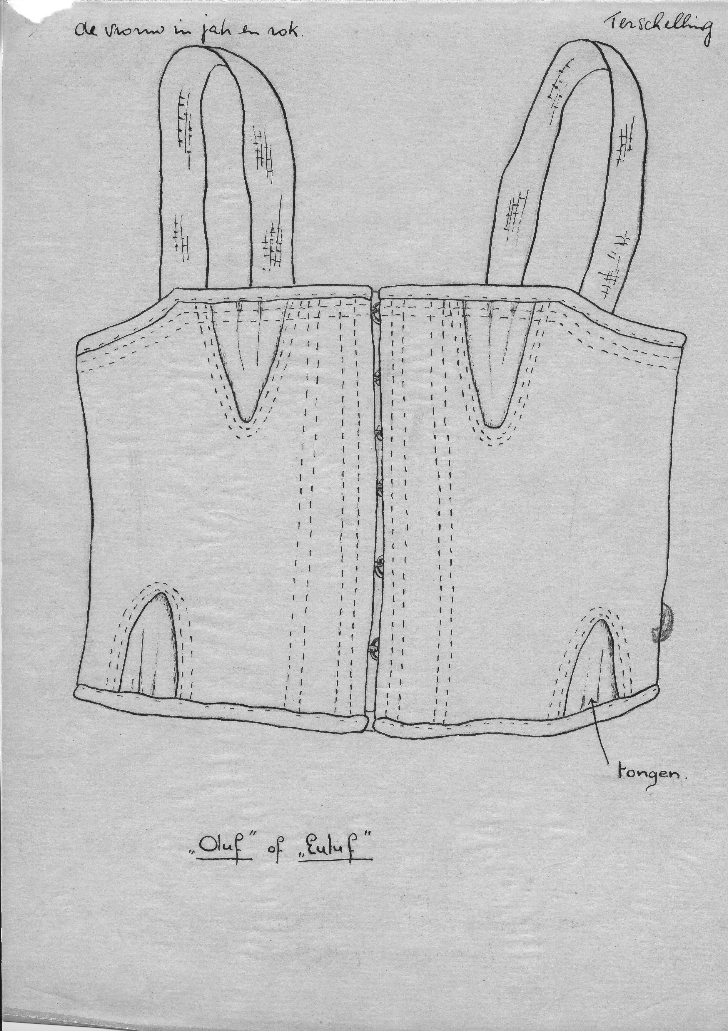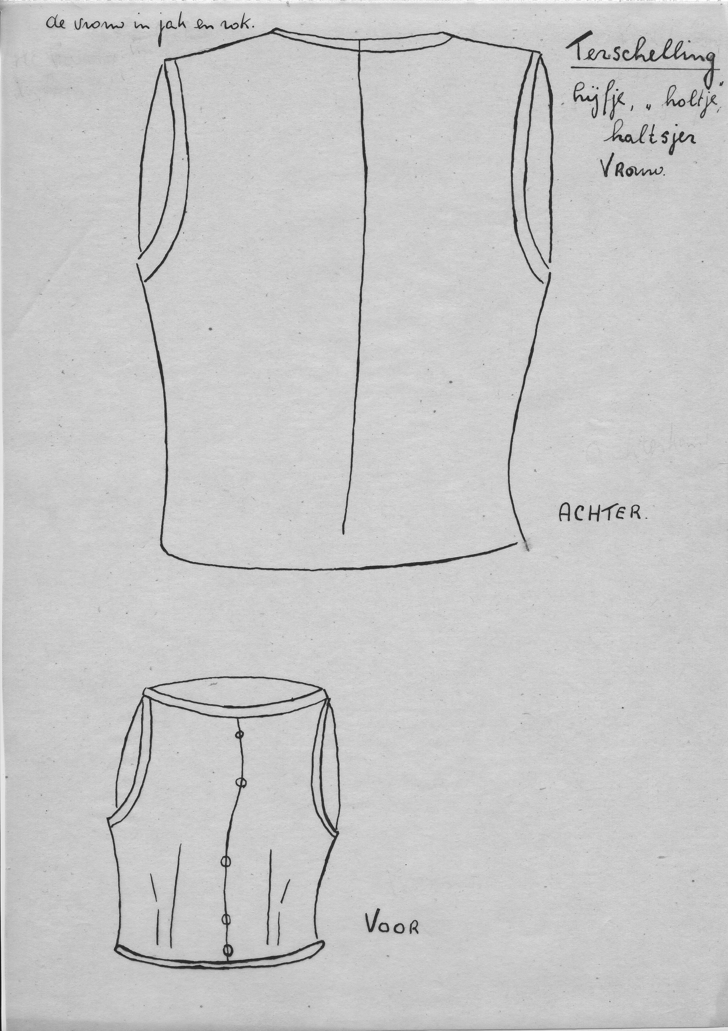 Tekening van een lijfje, 'holtje' of 'haltsjer', Ter...