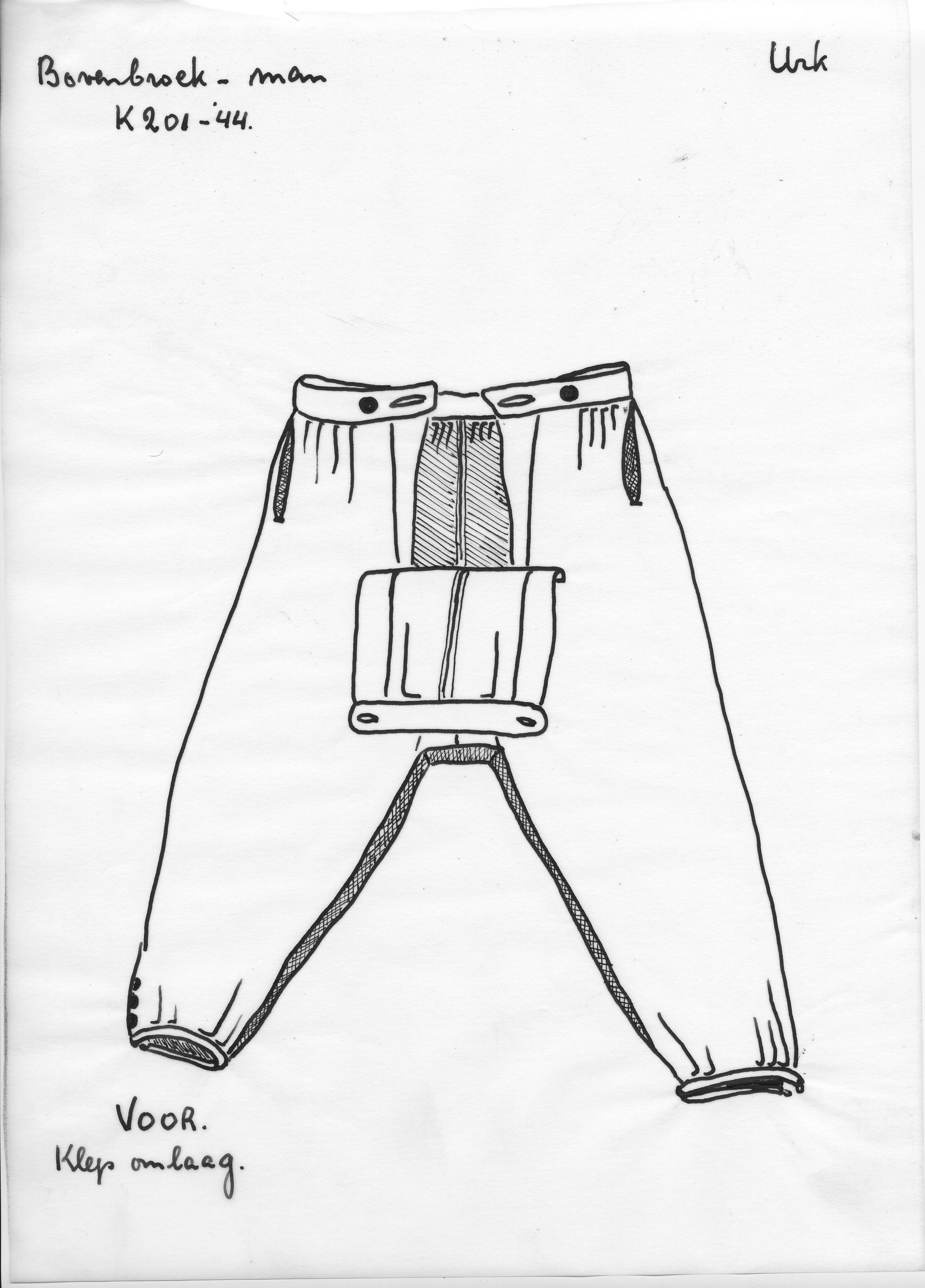 Tekening van een mannenbovenbroek en een knoop, Urk ...