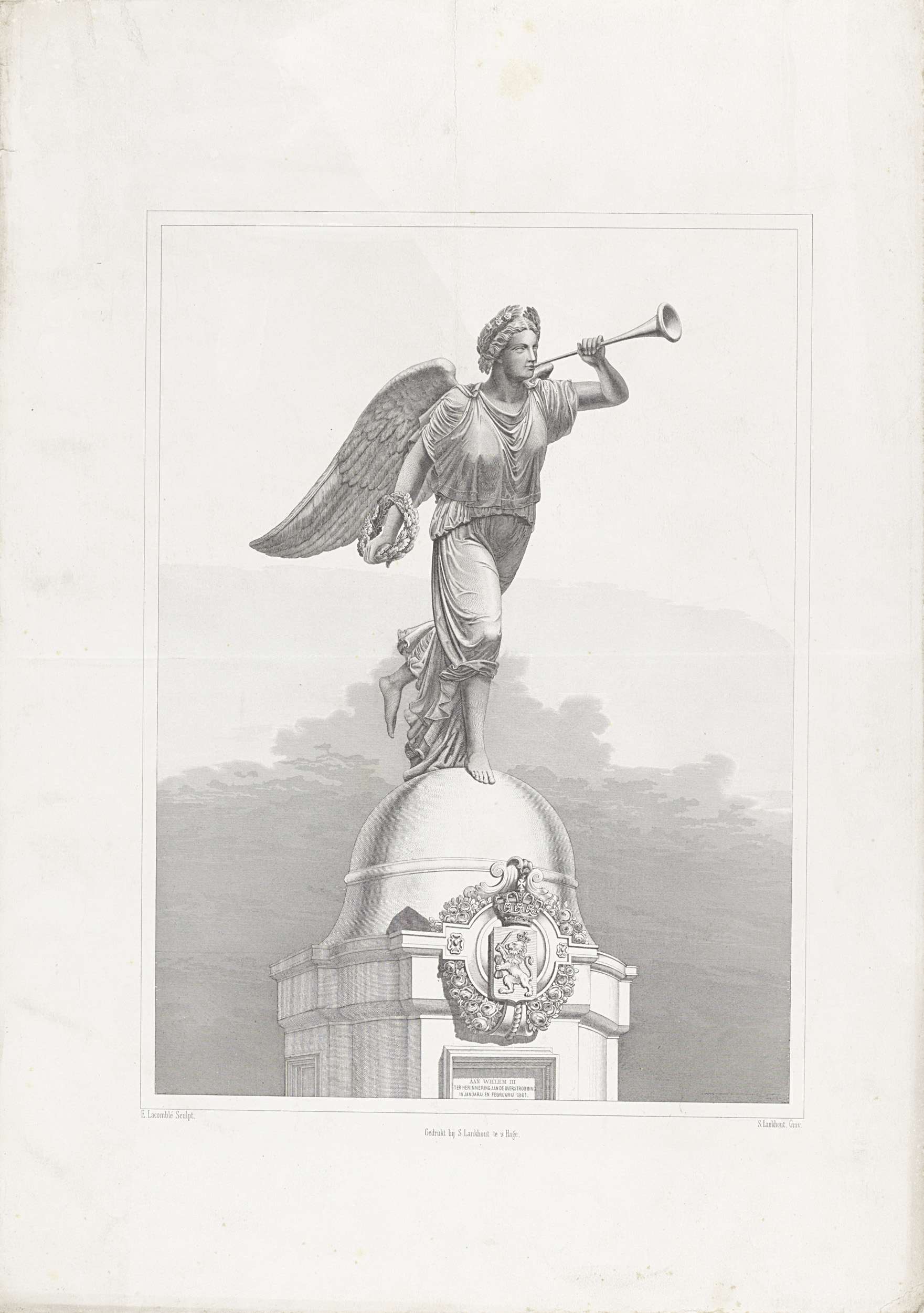 Beeld 'De Faam' opgericht in het park van Paleis Het...