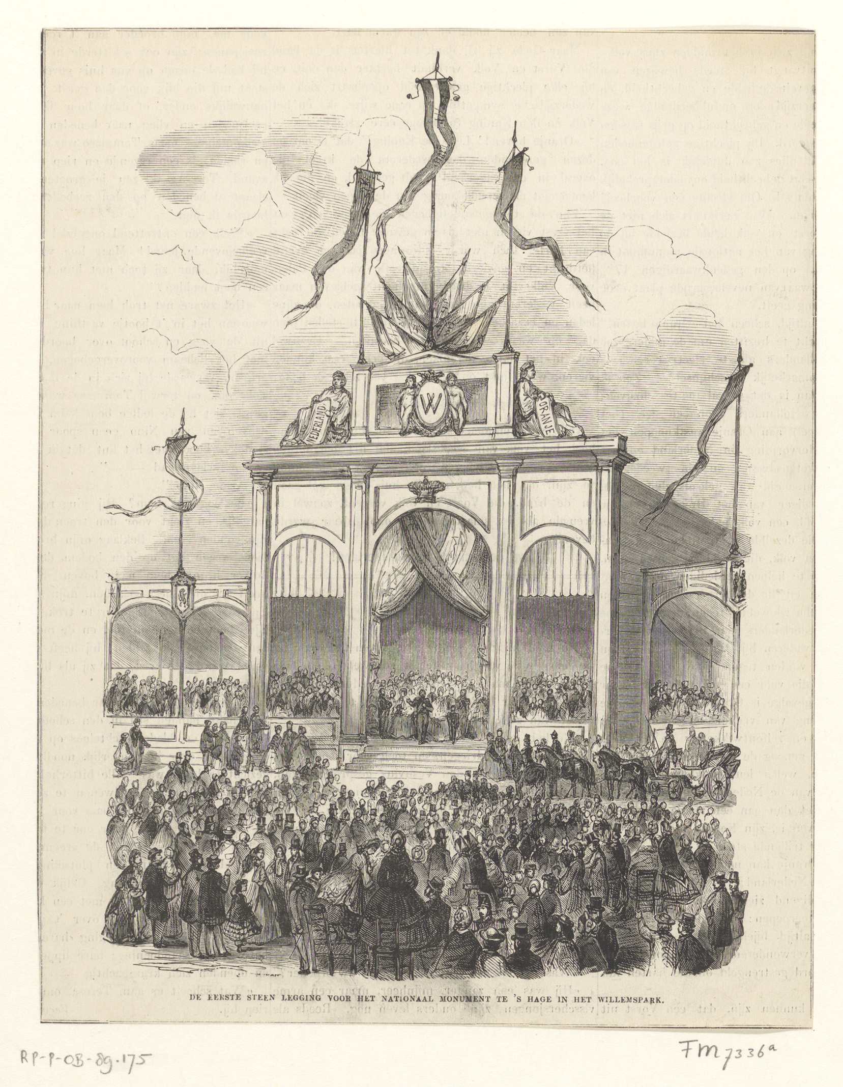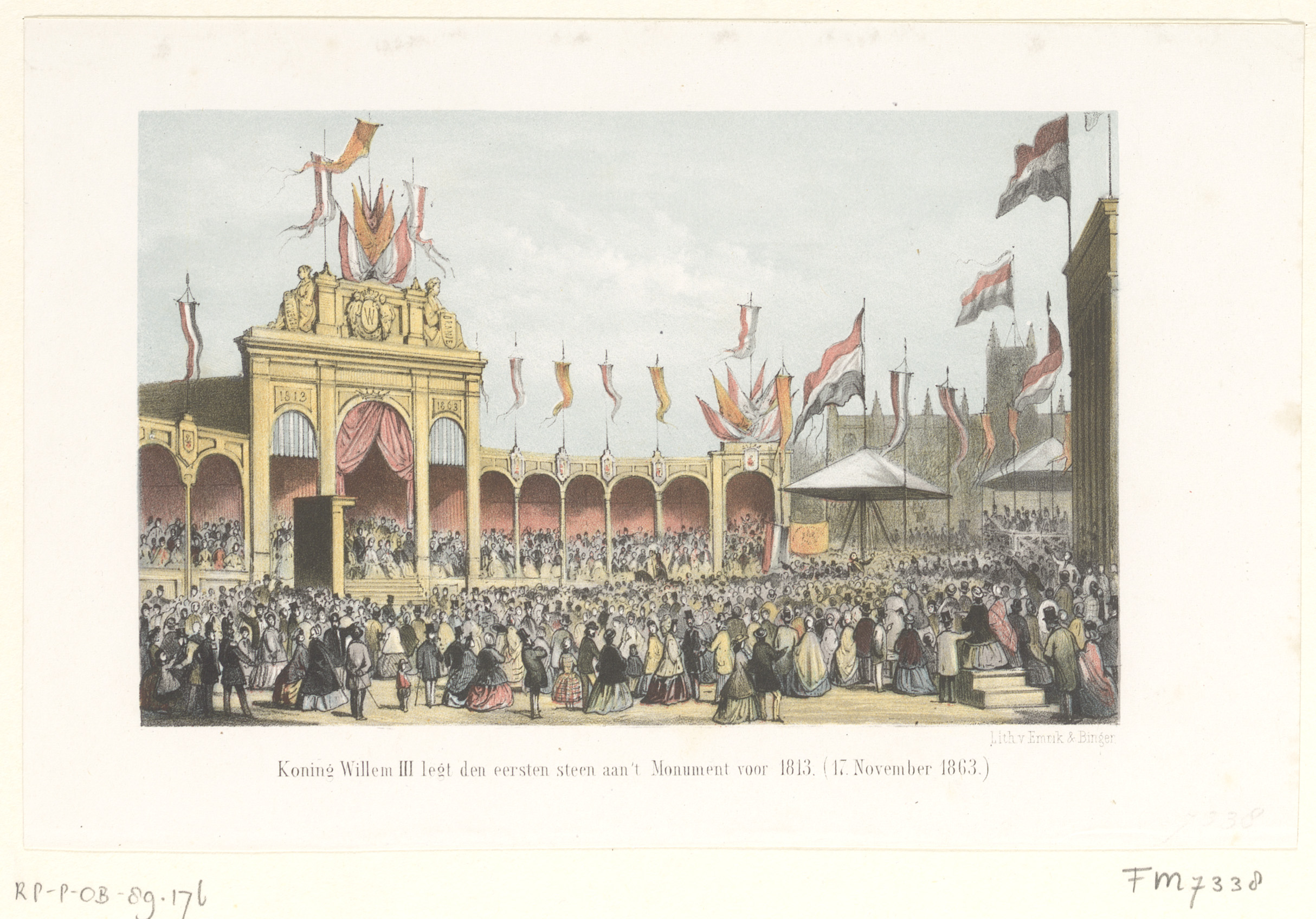 Eerstesteenlegging voor het monument van 1813 te Den...