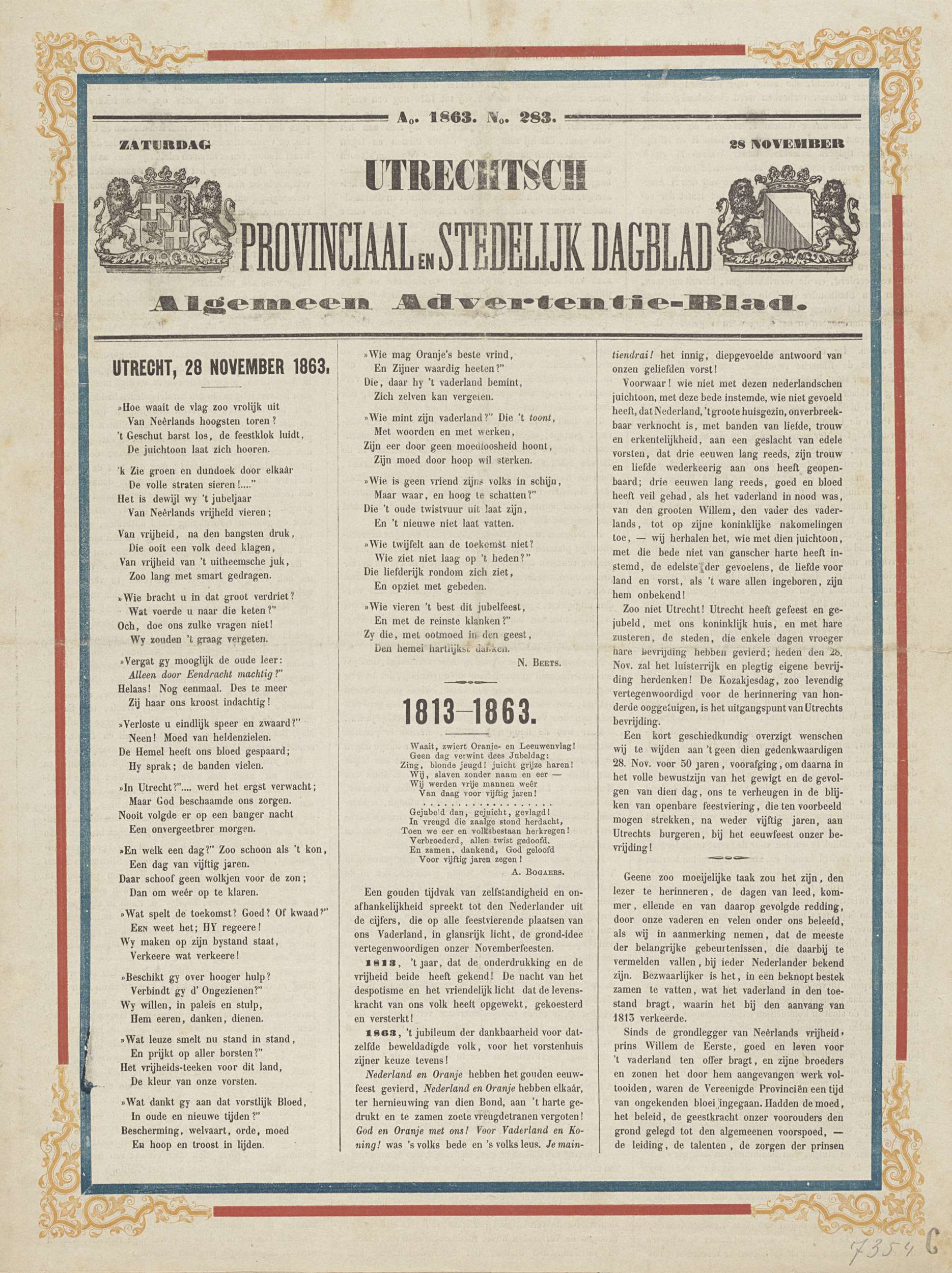 Nederlands Herstelling onder het Huis van Oranje 1863
