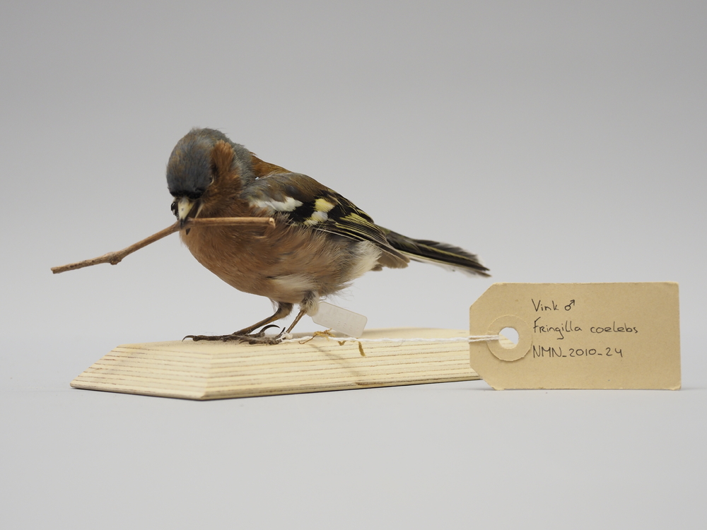 Vink, met takje in de bek