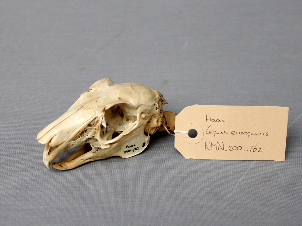 Haas; schedel met onderkaak; met twee halswervels