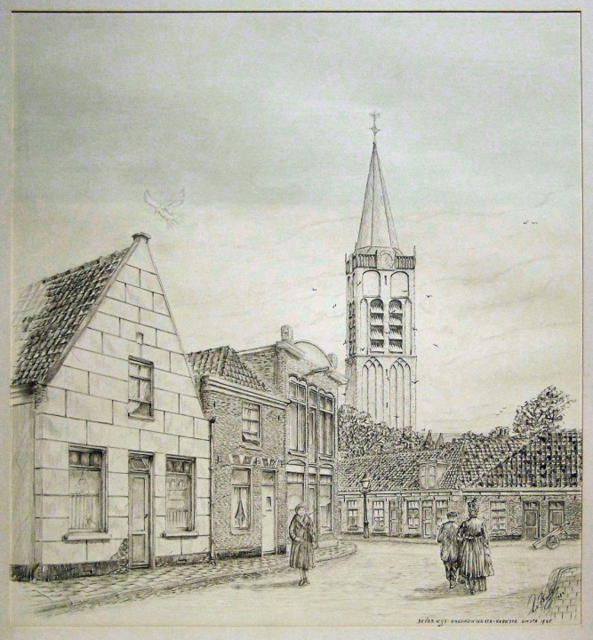 Tekening Koningstraat/Kerkstraat, omstreeks 1900
