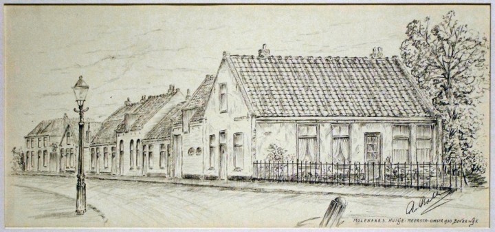 Tekening molenaarshuisje Meerstraat, omstreeks 1930