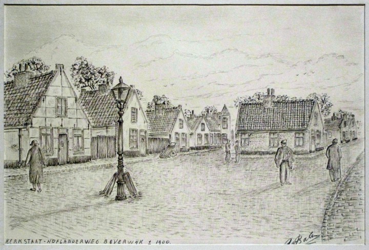 Tekening Kerkstraat/Hoflanderweg, omstreeks 1900