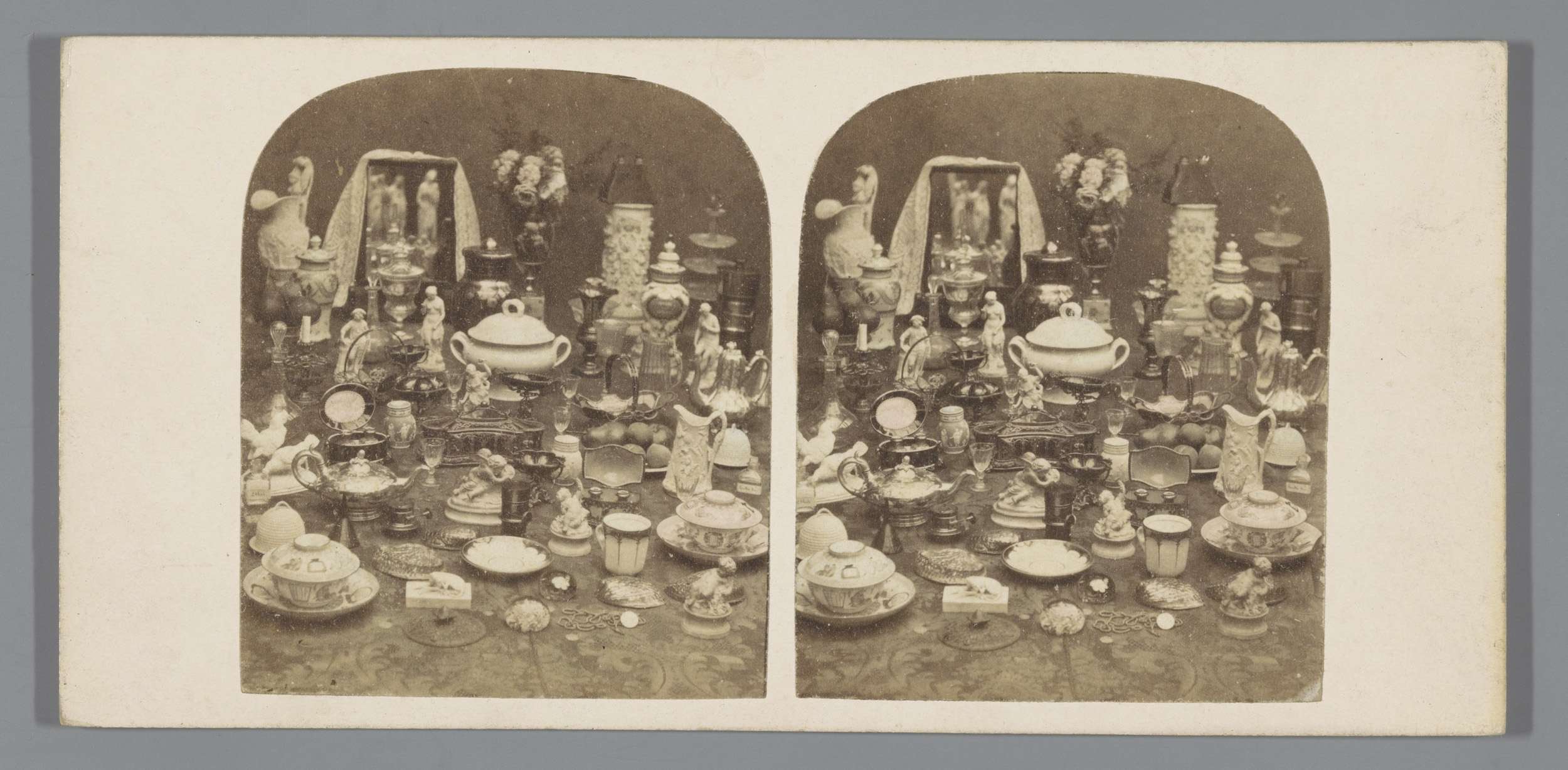 Stilleven met serviesgoed en sculpturen