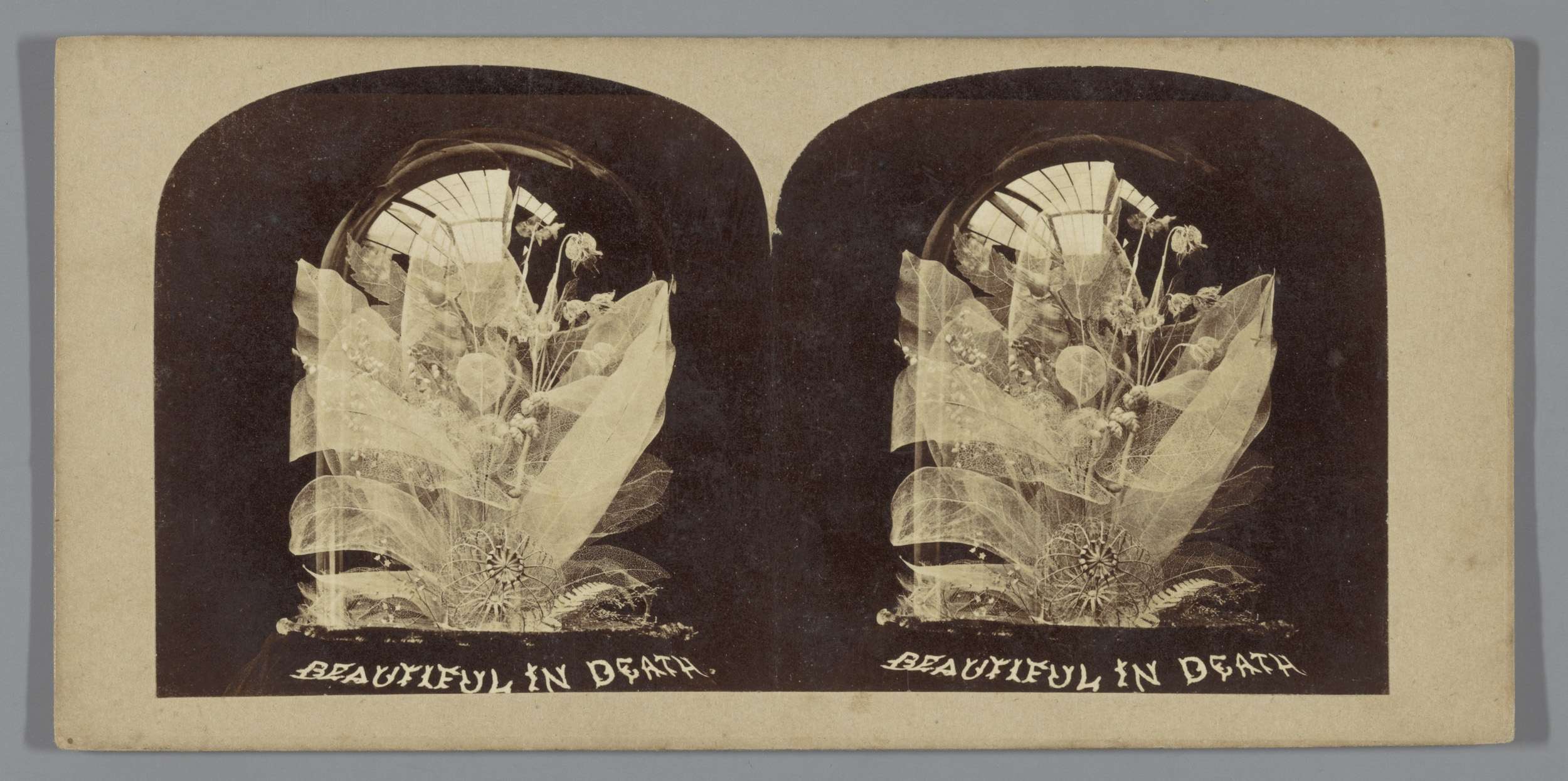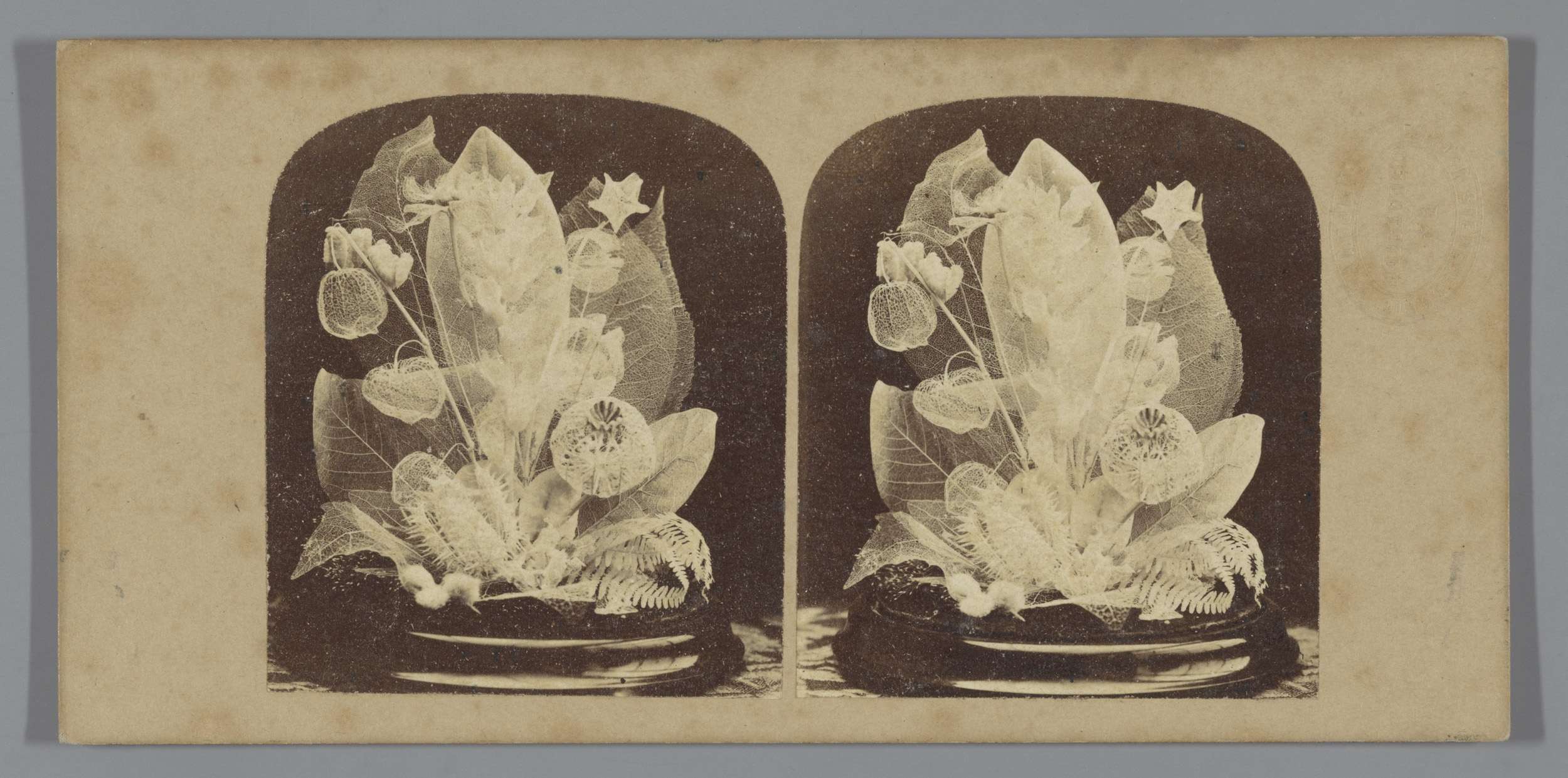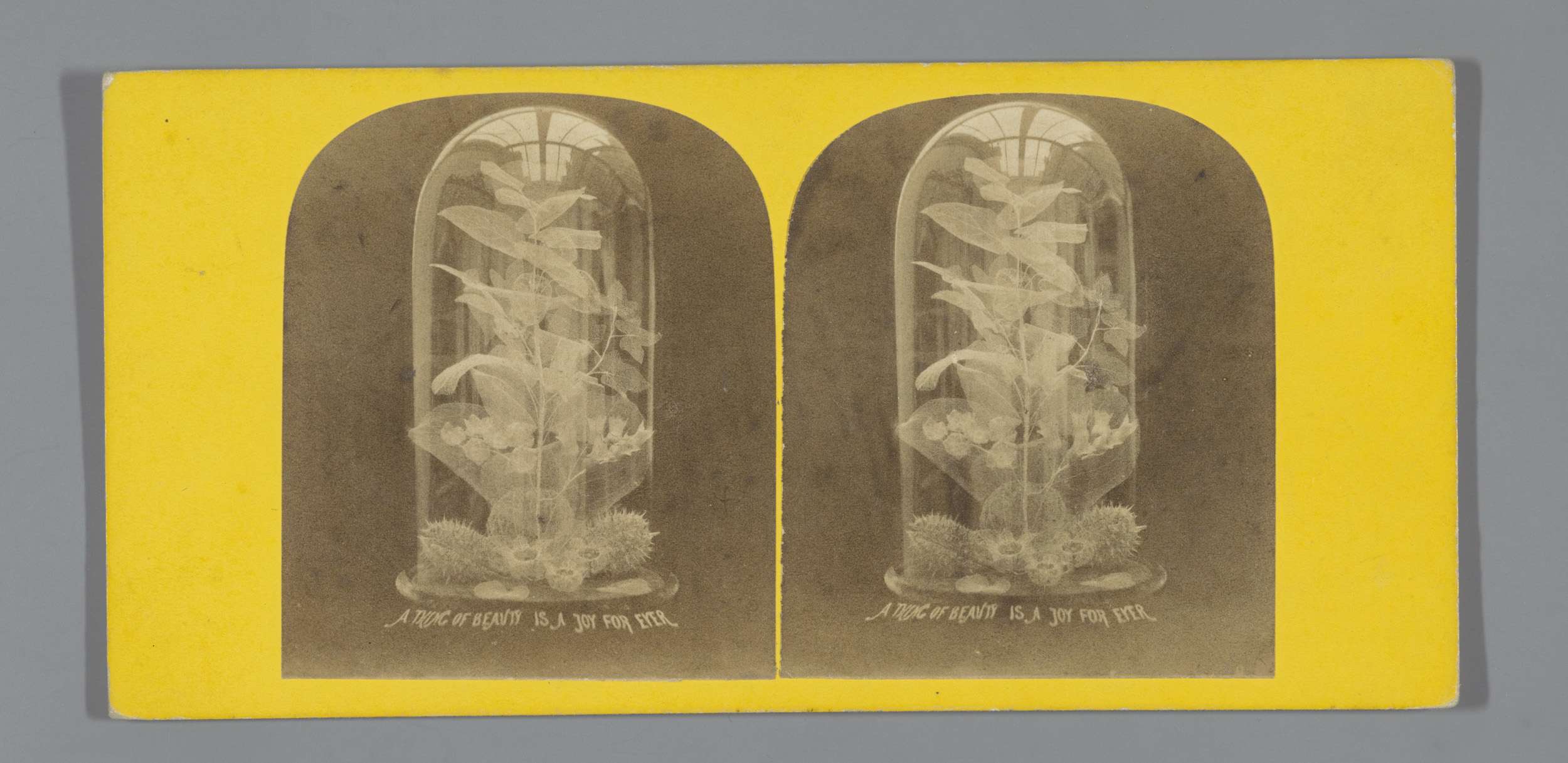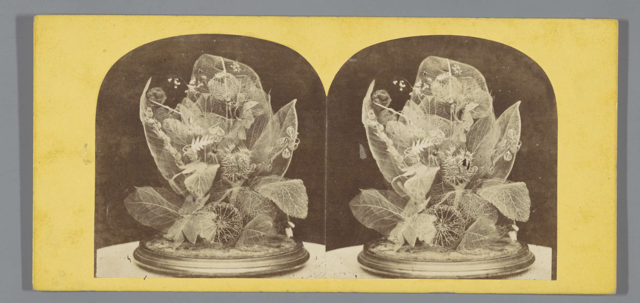 Stilleven met gedroogde planten onder stolp