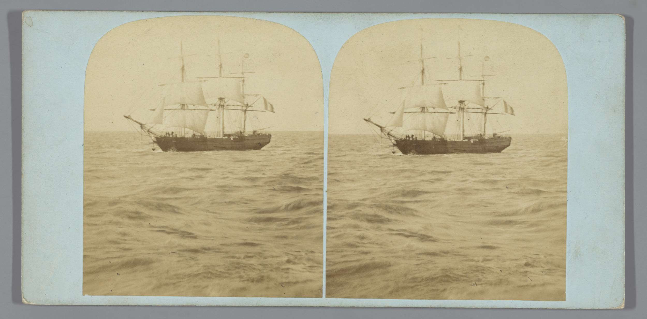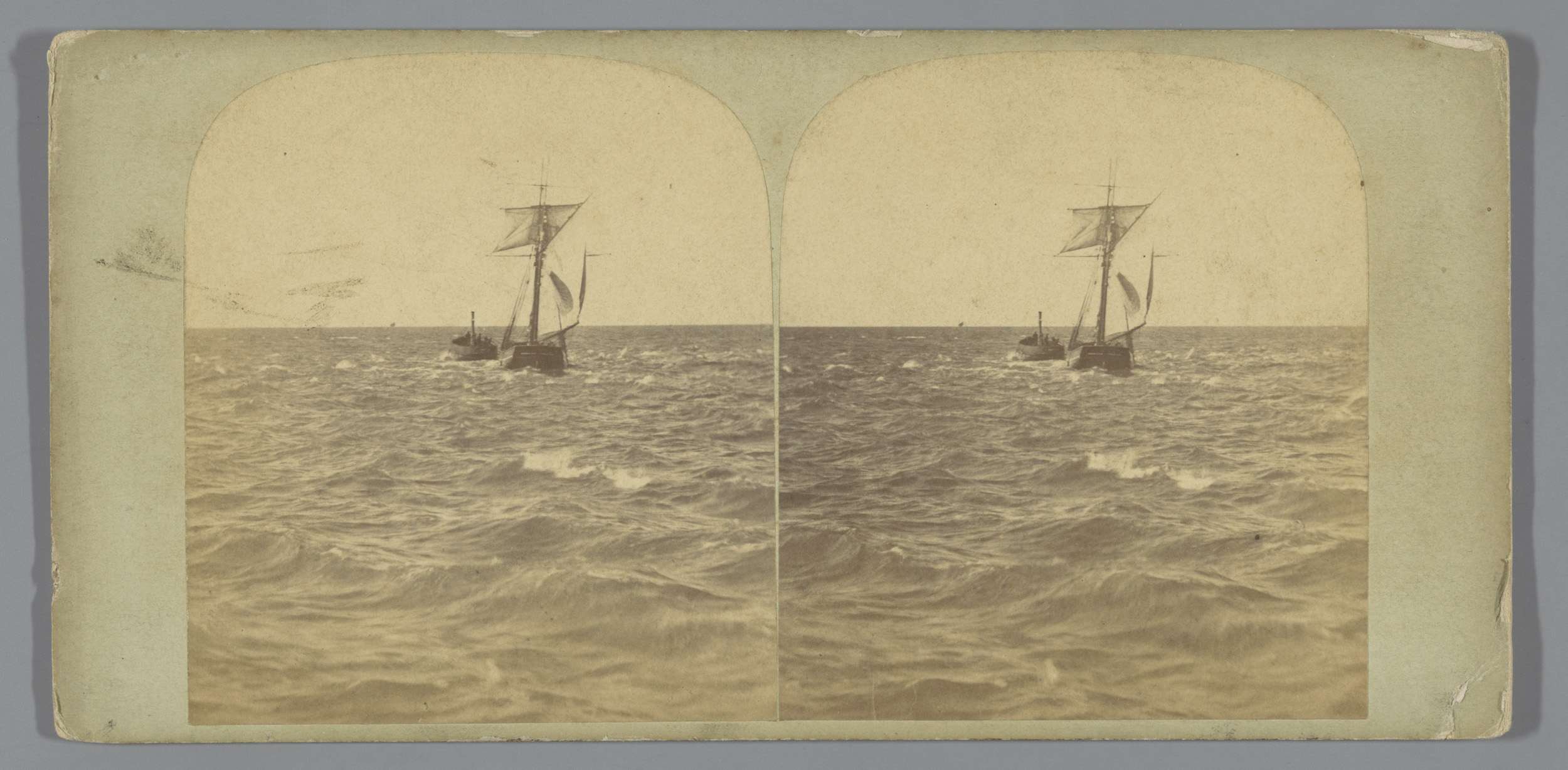 Gezicht op zee met twee schepen