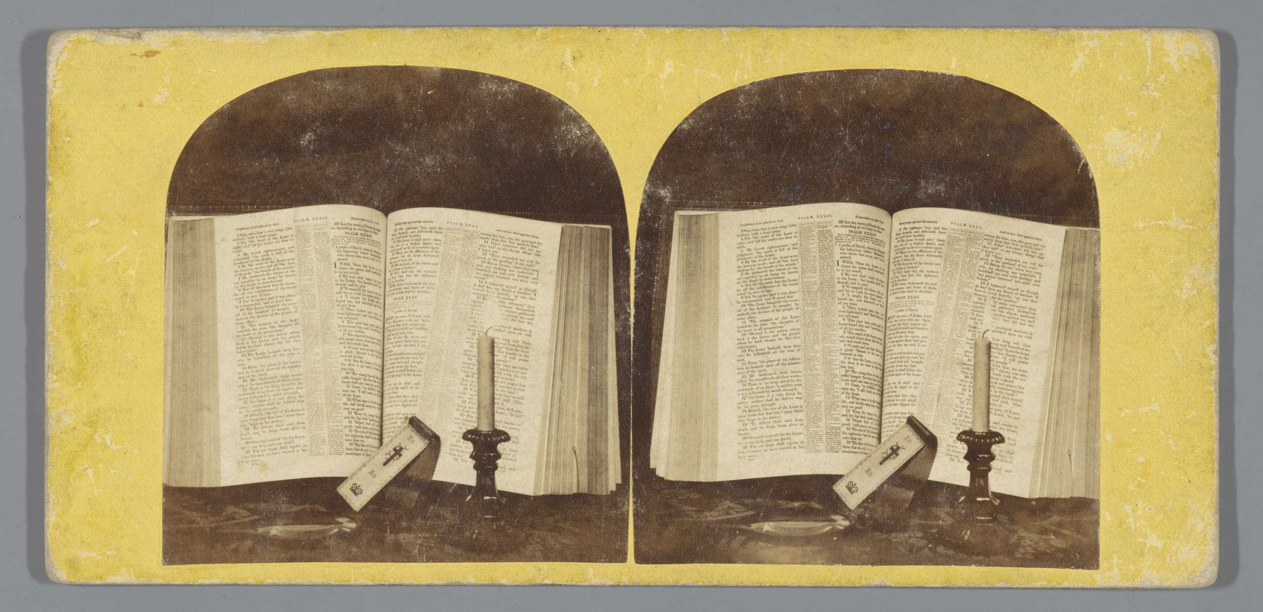 Stilleven met bijbel en brandende kaars