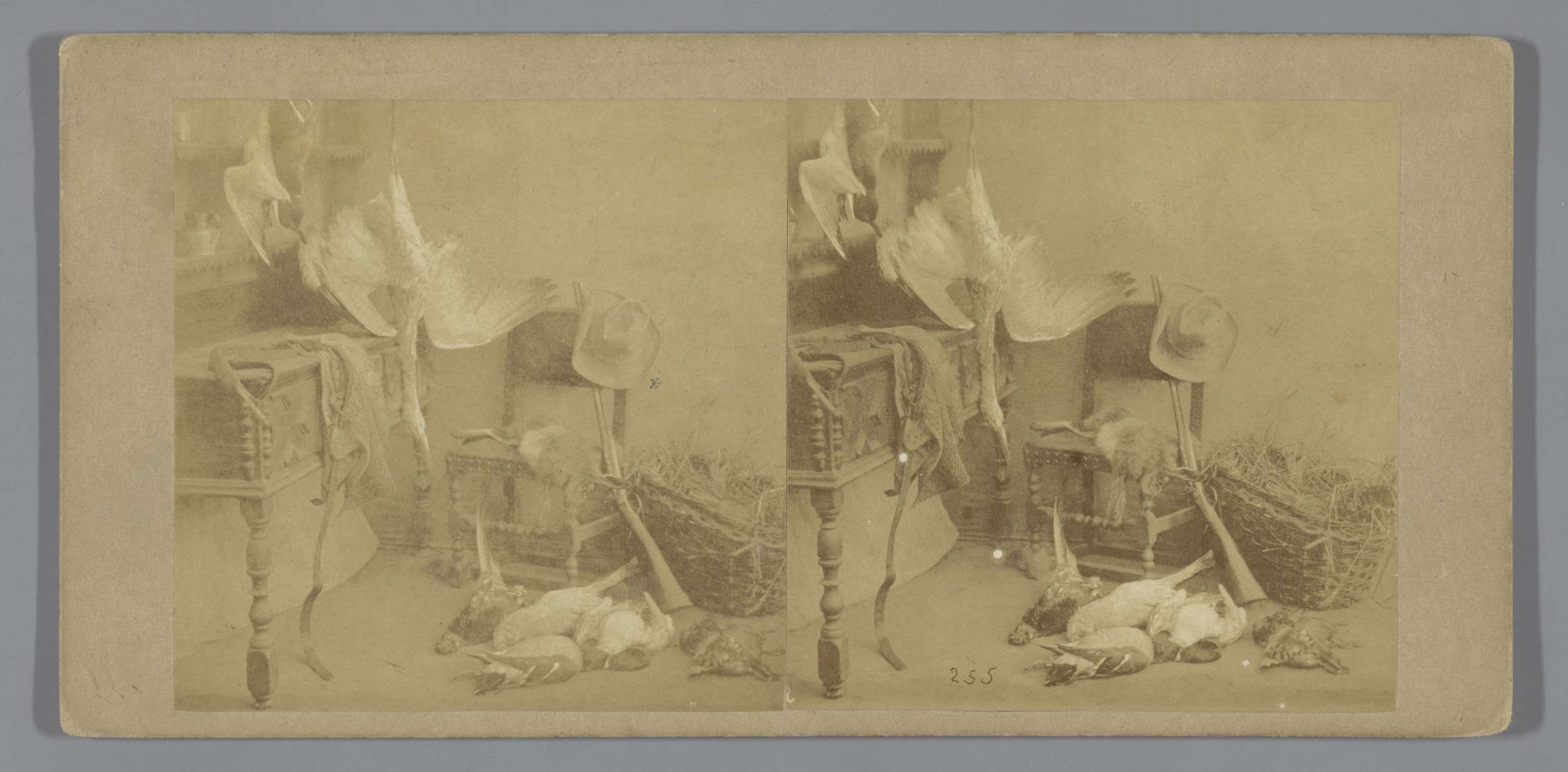 Stilleven met jachtattributen en geschoten wild