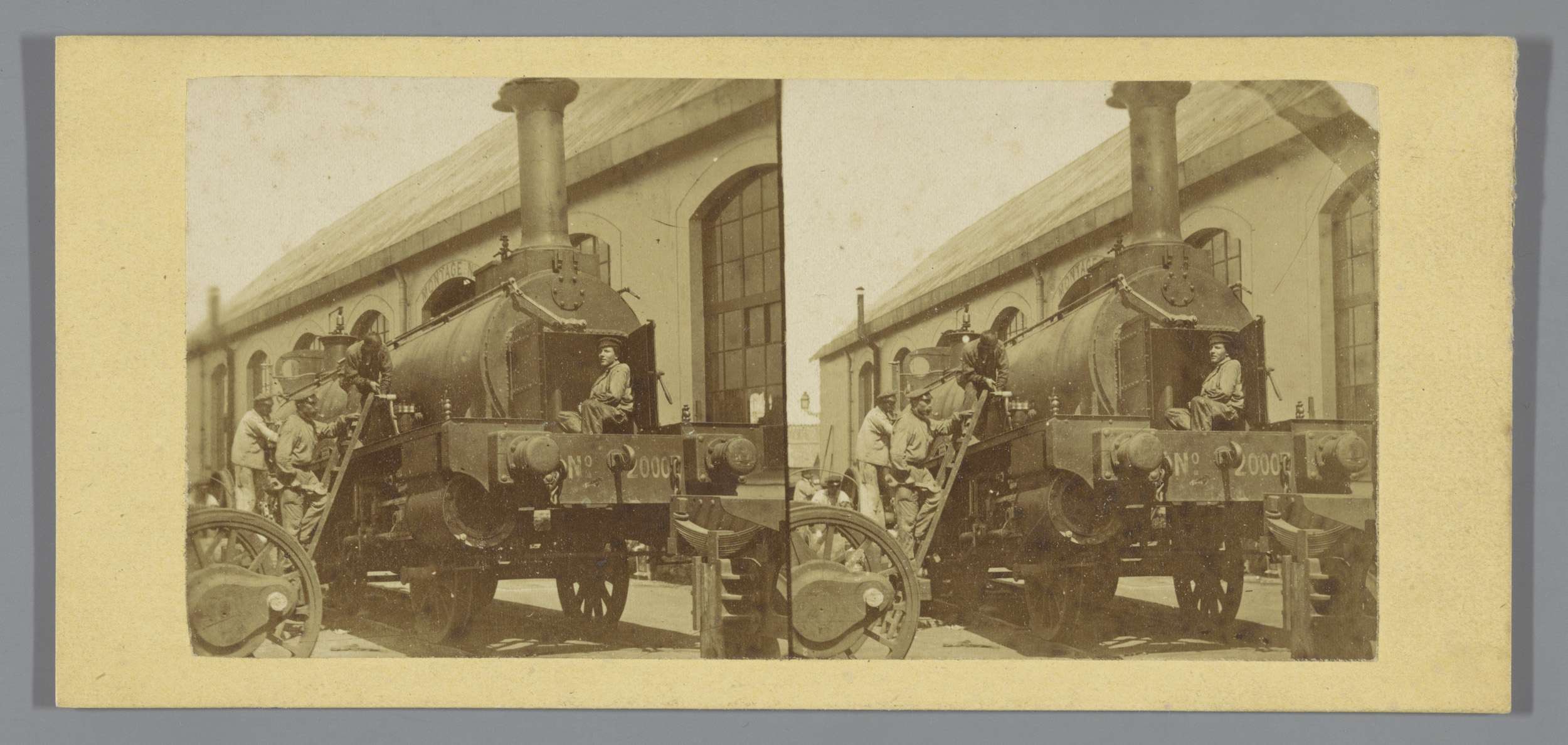 Stoomlocomotief met monteurs
