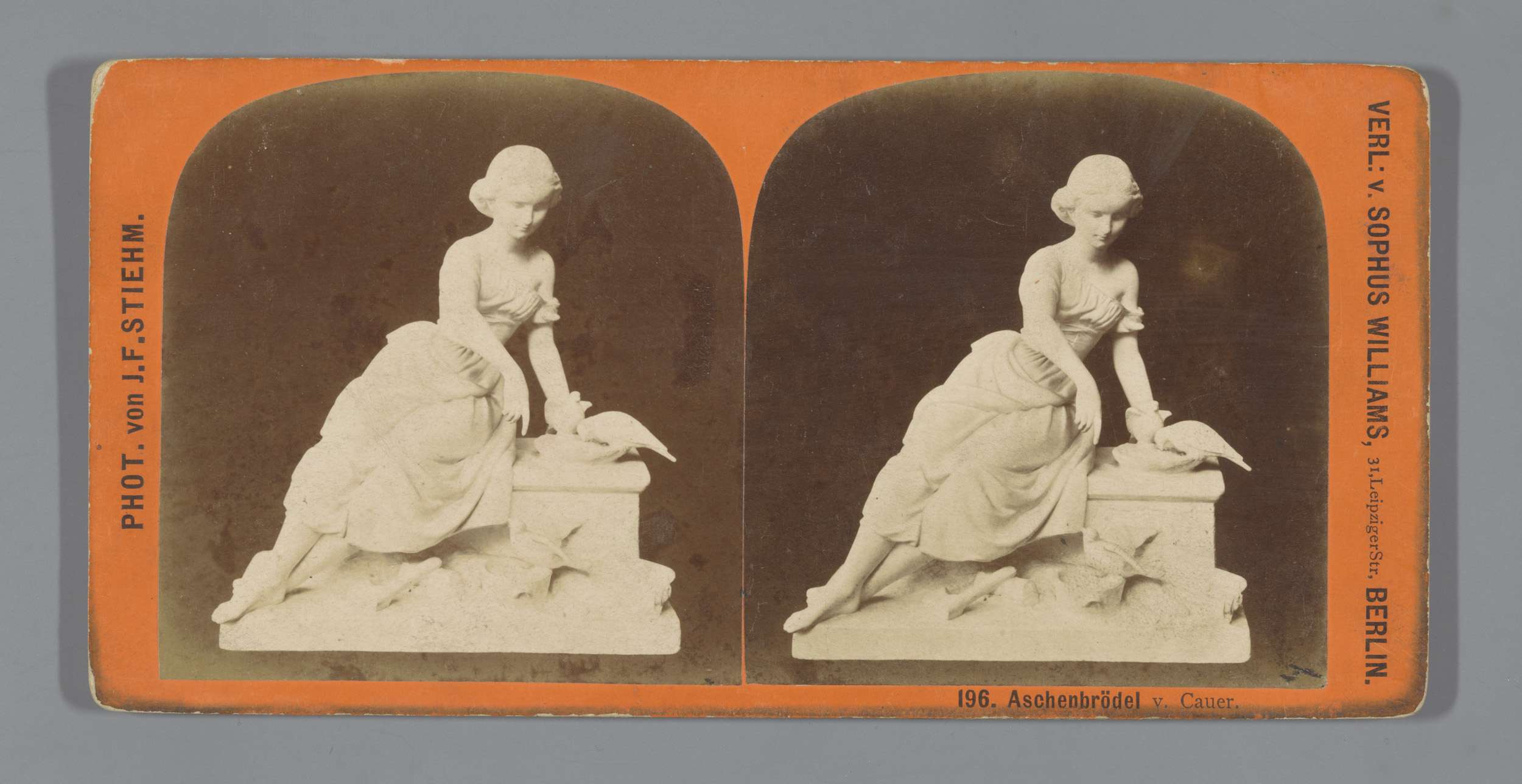 Sculptuur van Assepoester die de vogels voert