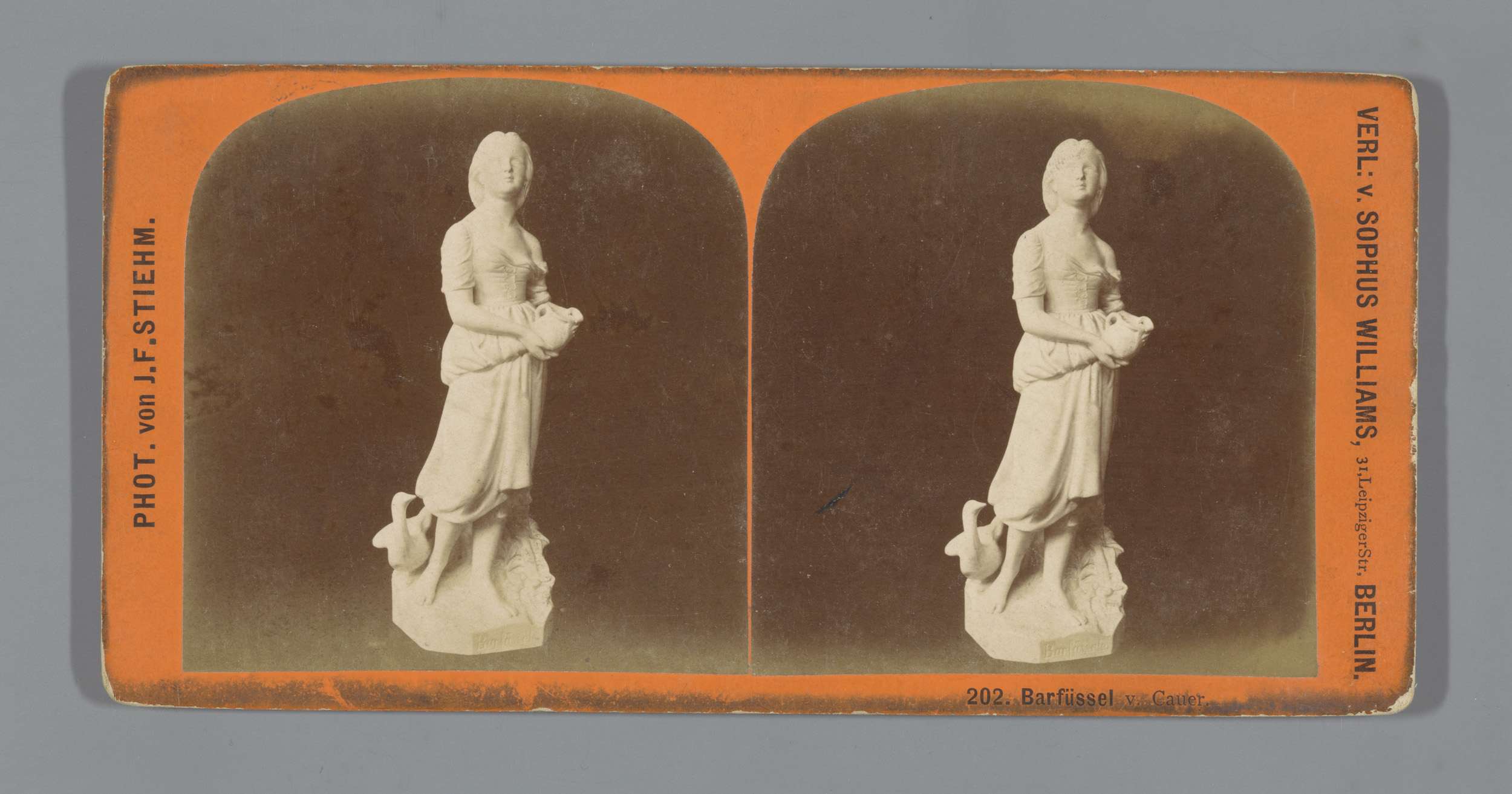 Sculptuur van meisje met kan en een gans