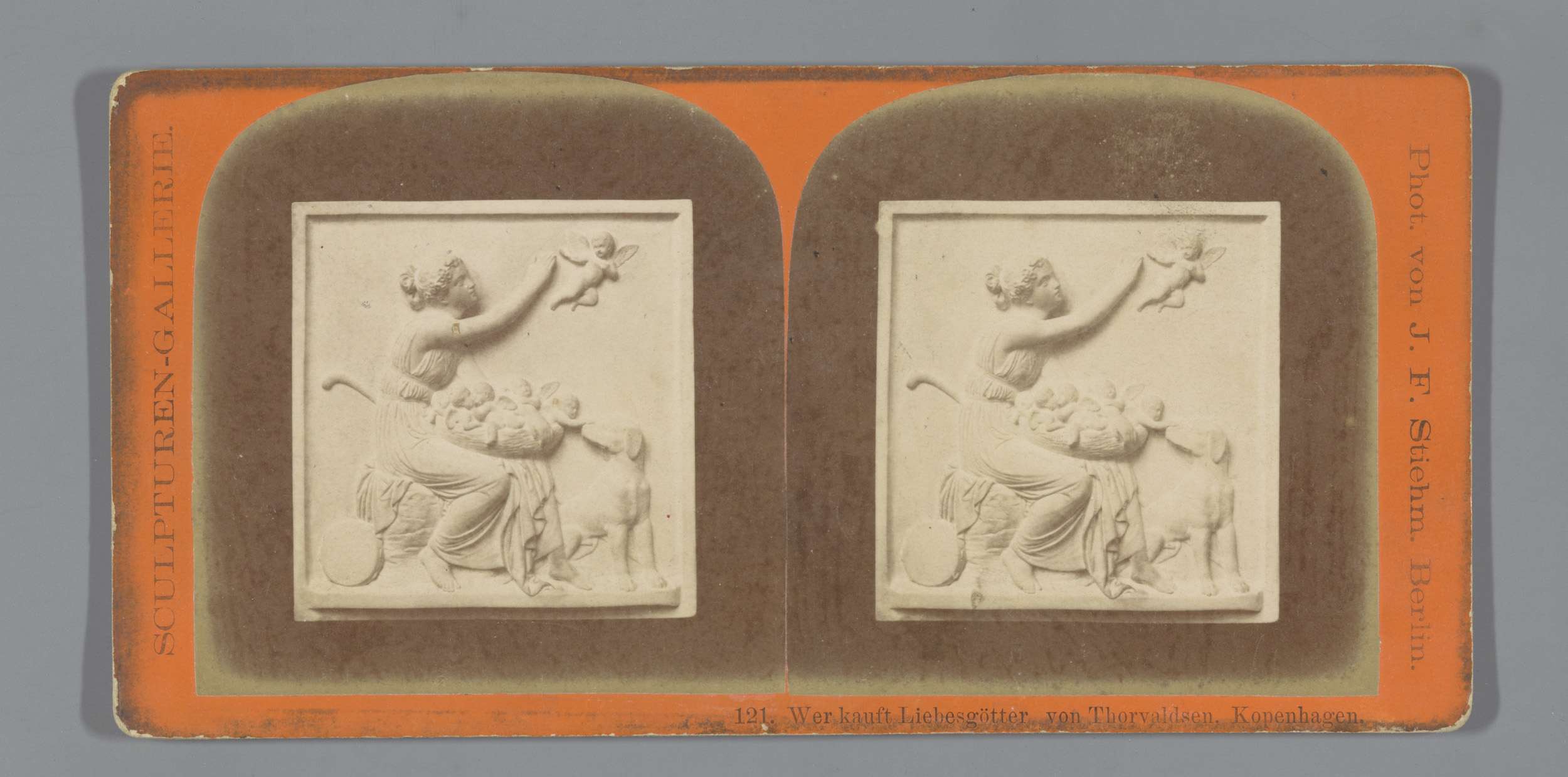 Plaquette van een vrouw met een mand vol Amors