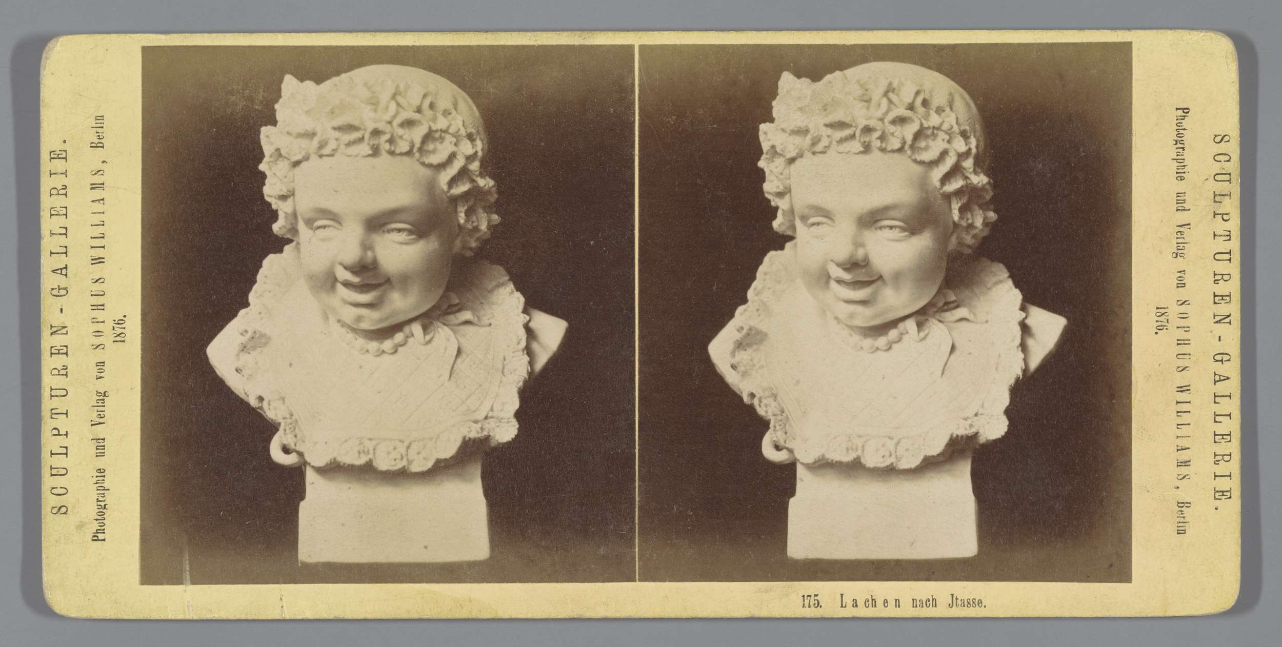 Sculptuur van een lachend kindergezicht naar Jtasse