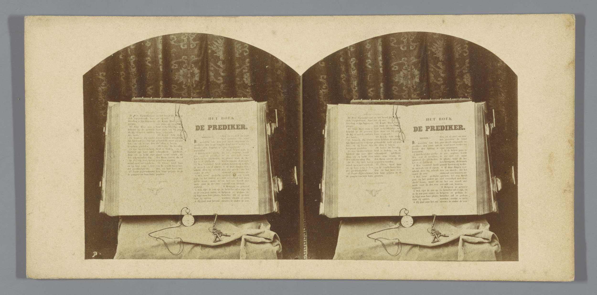 Stilleven met bijbelboek Prediker, horloge, bril en ...